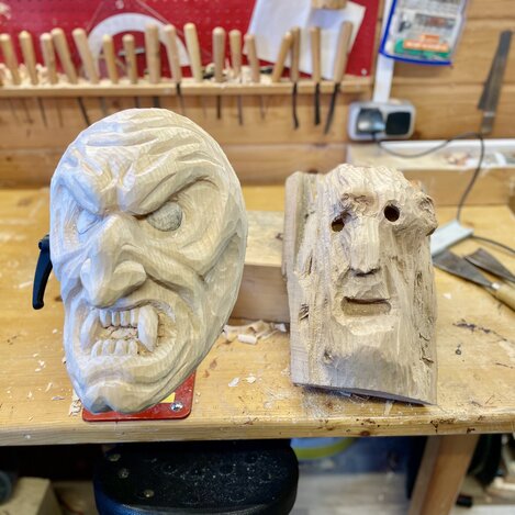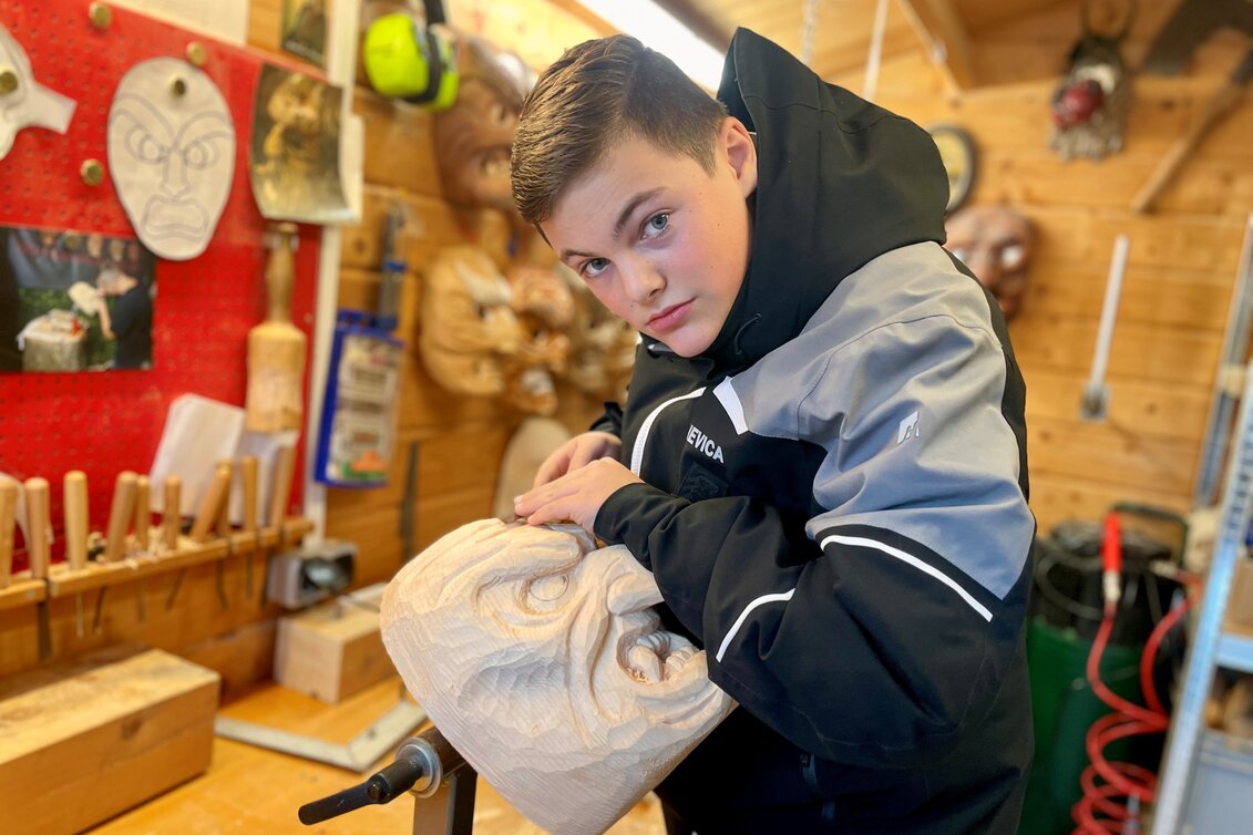 „Ich habe im Kindergarten immer schon gerne Monster gezeichnet. Und da haben sich irgendwann Krampusse daraus entwickelt“, erinnert sich Armin an den Beginn seines Hobbys. Gelernt habe sich der Jugendliche das Schnitzen selbst, erzählt Jürgen: „Er hat sich andere Masken angeschaut und sich da selbst eingearbeitet.“