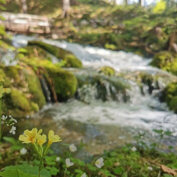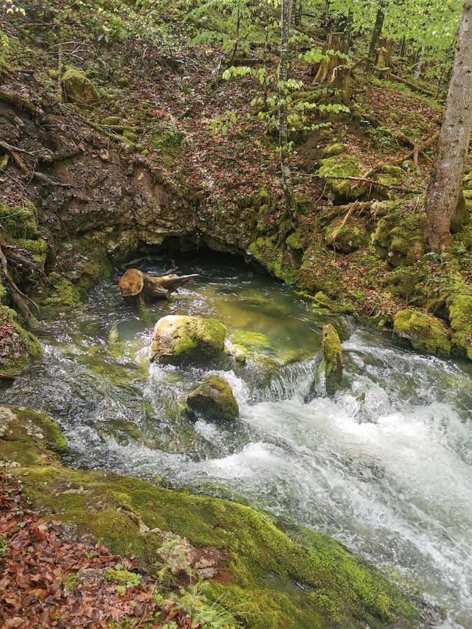 Gelegentlich kommen die Karstquellen auch zum Vorschein, wenn es im Sommer lang anhaltende Regenperioden gibt. Sind die Quellen wieder versickert, so können Wanderer auf den moosbedeckten Steinen spazieren und staunen, wie weit sich die Strumern ihren Weg durch den Wald bahnen.