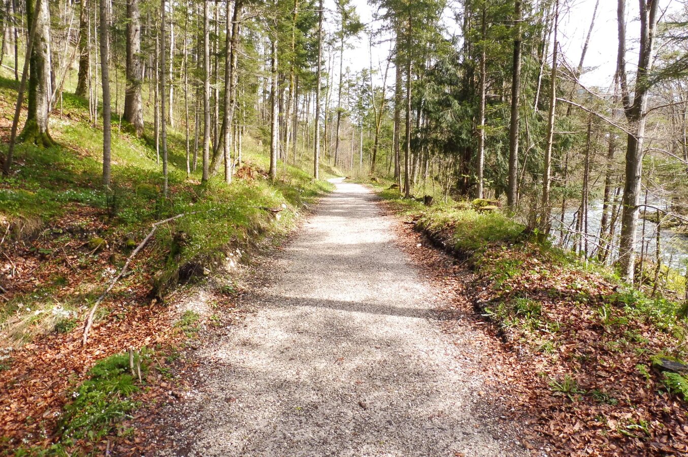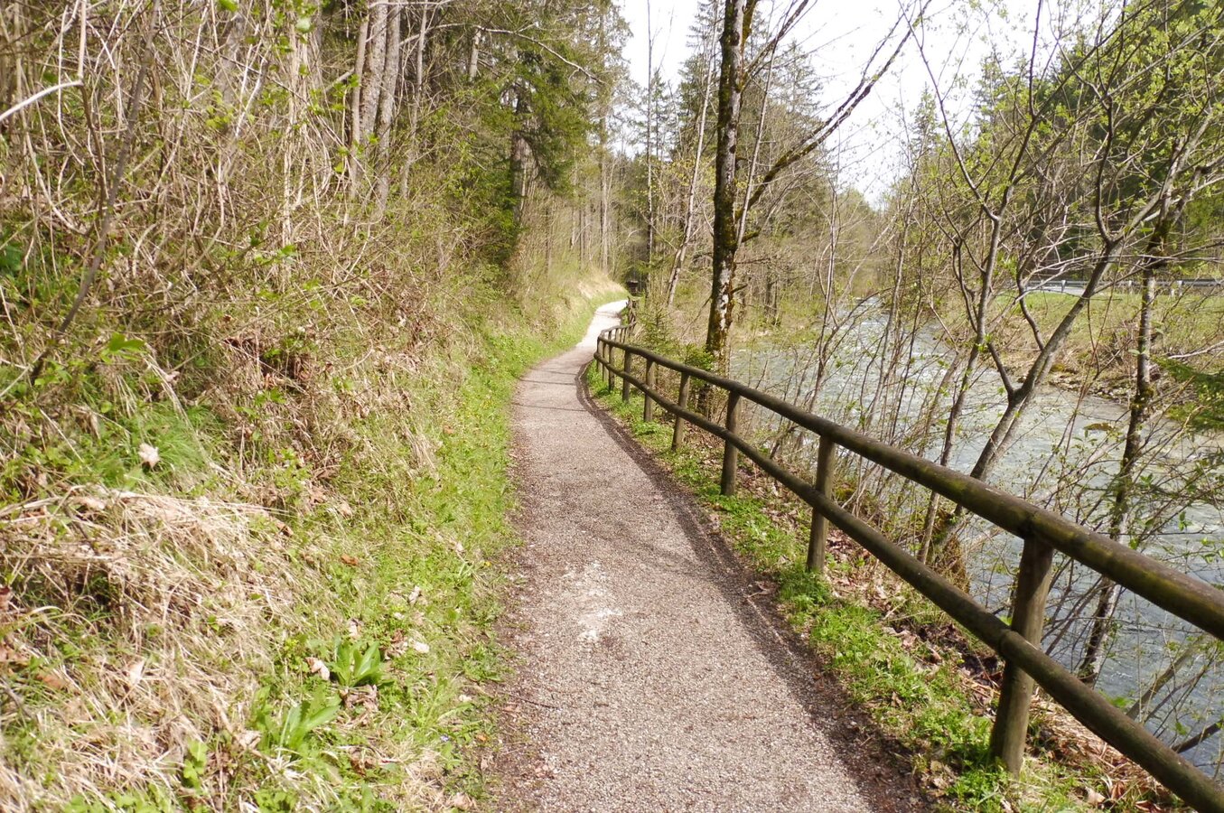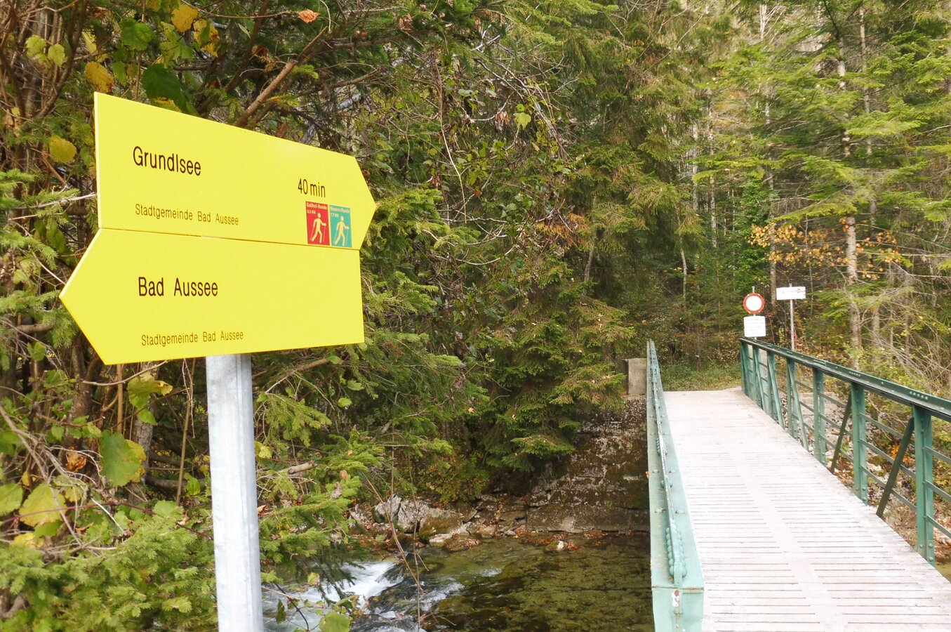 Durch den Kurpark Bad Aussee führt die Route über den Gamsensteg, die Tauscheringasse und die Richard-Eybner-Promenade, den Wegweisern folgend in Richtung Grundlsee. Beim Heizwerk verläuft die Strecke ein kurzes Stück entlang der Grundlseer Landesstraße, ehe sie in die schattige Waldruhe-Promenade an der Traun einmündet.