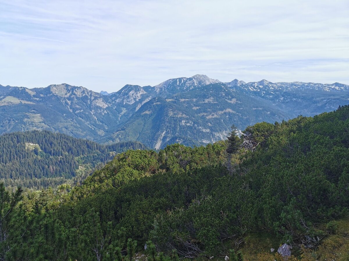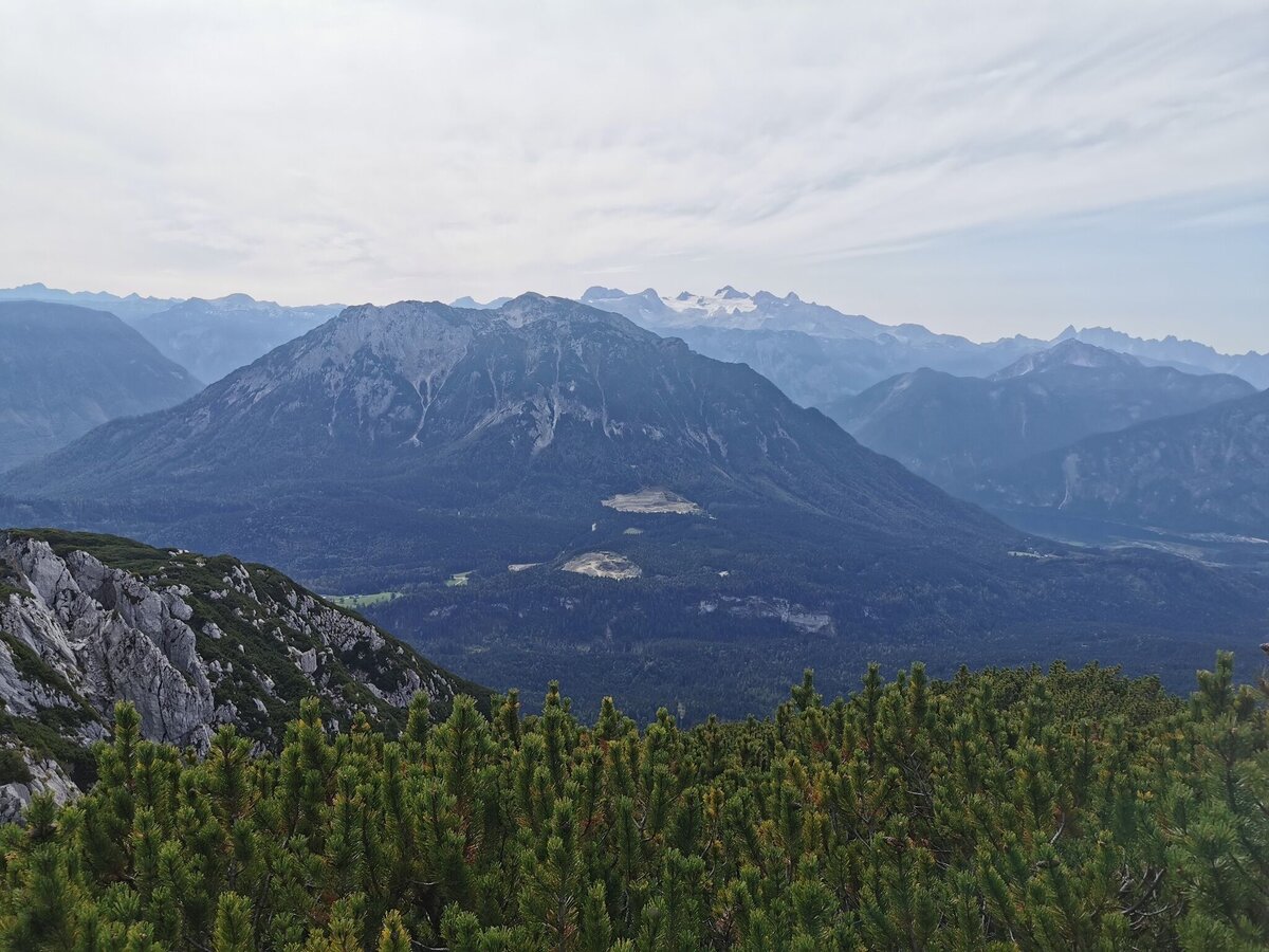Man muss oft über hohe Felsrippen hinunter und erreicht bald den eigentlichen Gipfelsteig. An der Kreuzung mit dem Weg Nr. 250 wendet man sich nach links und steigt wiederum steil hinauf zum Gipfel, der nach etwa 3 1/2 Stunden Gehzeit erreicht wird. Zum Abstieg wird der Weg Nr. 250 zur vorderen Sandlingalm gewählt. Dieser ist sehr steil und gesichert. Dort wendet man sich auf dem Almboden nach rechts, wandert gemütlich zurück zur Ausseer Sandlingalm und nimmt den Aufstiegsweg zur Fludergraben- und Blaa Alm.