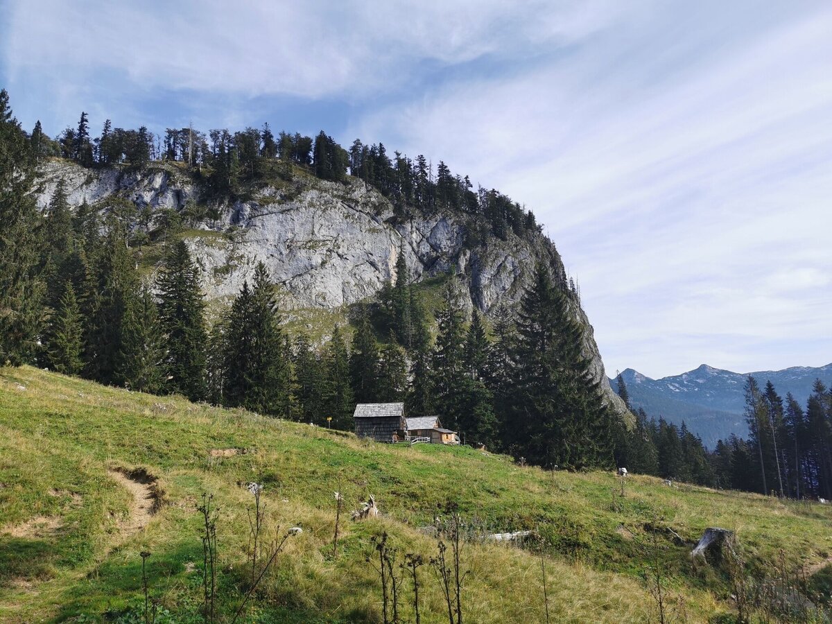 Parkplatz unmittelbar beim Eintreffen auf der Blaa Alm, unterhalb des Jagdhauses.