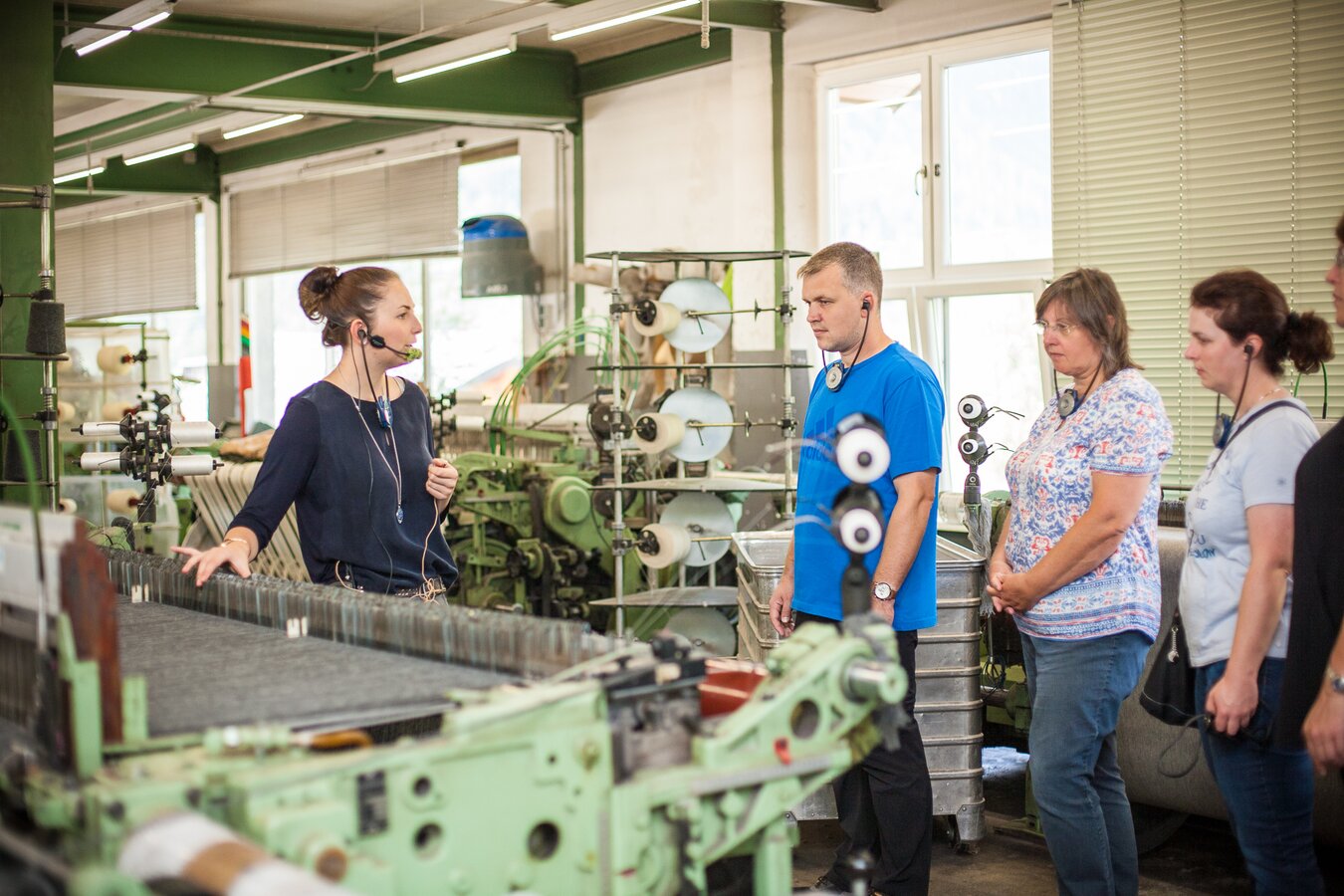 Ihre Gruppe erwartet eine professionell aufbereitete Führung durch unsere Lodenmanufaktur. Den stimmungsvollen Auftakt bildet ein 10-minütiger 3-D-Film. Anschließend nehmen wir die Gruppe mit auf die Reise: Von der Wolle bis zur fertigen Kuscheldecke. Ein erfahrener Tourguide begleitet sie persönlich und bietet überraschende Einblicke in die traditionsreiche Herstellung des Lodens. Durch Kopfhörer und Headset gibt es ein perfektes Hörerlebnis, selbst wenn die Maschinen rumpeln und der Dampfkessel pfeift. Kurze Infofilme sowie Fühlstationen runden das Erlebnis mit allen Sinnen ab.