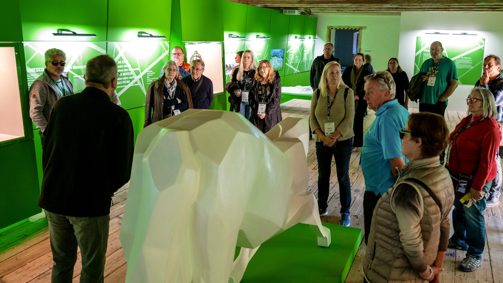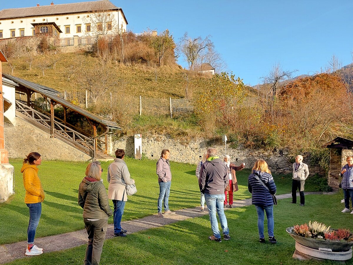 Für einige in der Runde zum ersten Mal, führte Ende Oktober die Reise in die Steiermark. Herzlich empfangen von Familie Felsner fühlten sich die Teilnehmer:innen im gleichnamigen Hotel im historischen Ortskern von Haus im Ennstal gleich sichtlich wohl. Voller Vorfreude auf die kommenden Besichtigungen, chauffierte uns Thomas von Bus Planai durch die WM-Stadt Schladming zur Wollwelt Steiner1888. In modernem, grün-weißen Loden gekleidet, lud Sigrid Steiner zu Kuchen und Kaffee. Ein eindrucksvoller 3D-Film vermittelte uns erste Eindrücke zur Lodenmanufaktur, durch die wir im Anschluss persönlich geführt wurden. Die Tour gab Einblick in die vielen Verarbeitungsschritte bis zum fertigen Kleidungsstück - besonders faszinierend für alle Technik-Begeisterten. Auch eine über 130 Jahre alte Hammerwalke kommt noch zum Einsatz, um den robusten Loden für den traditionellen Schladminger Janker zu erzeugen. Obwohl freitagnachmittags die Produktion für diese Woche bereits beendet war, gab's eine Hörprobe von der laut klopfenden Maschine.