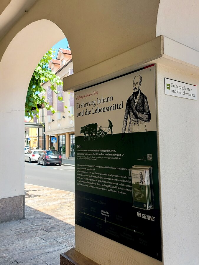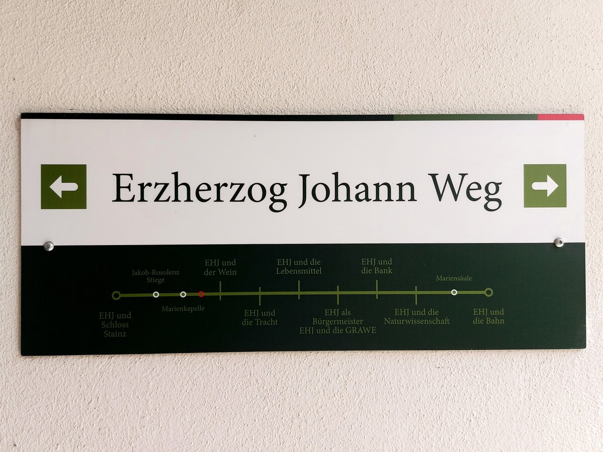 Gestärkt wandern wir weiter zu den nächsten Stationen. Im Laufe des Nachmittags staunen wir immer mehr über das Wirken des steirischen Prinzen. Sei es im Bank- und Versicherungswesen, im Weinbau oder beim klassischen Steirer-Gewand – Erzherzog Johann hat tiefe Spuren in der Bevölkerung hinterlassen und diese bis weit über die Grenzen der Steiermark hinaus beeinflusst.