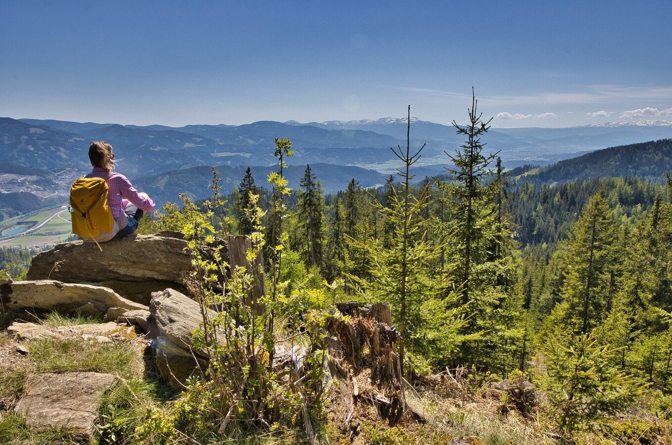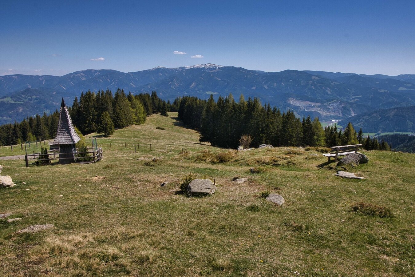 Eine sonnseitige Waldwanderung mit aussichtsreichen Almen hoch über der Mur.