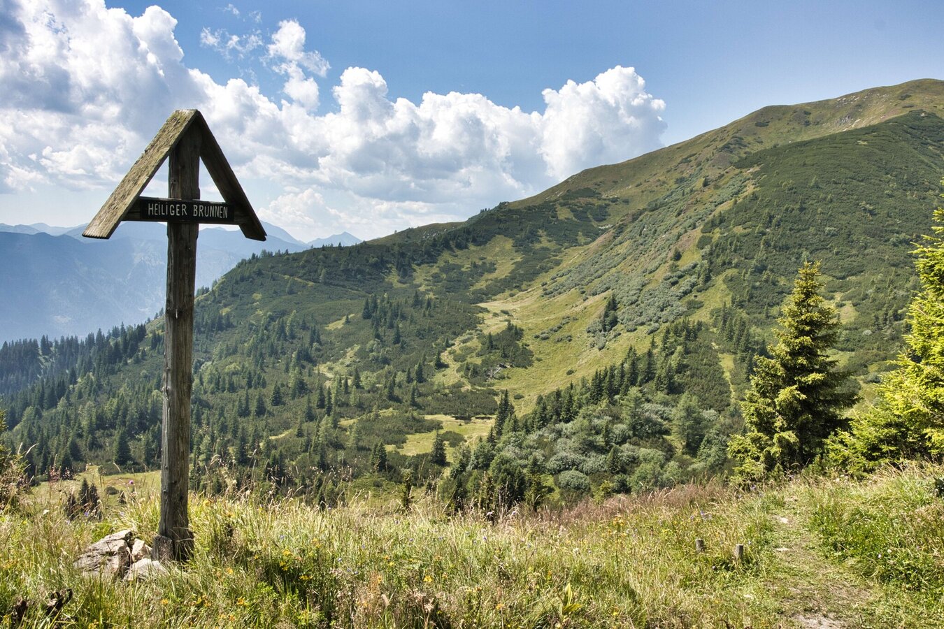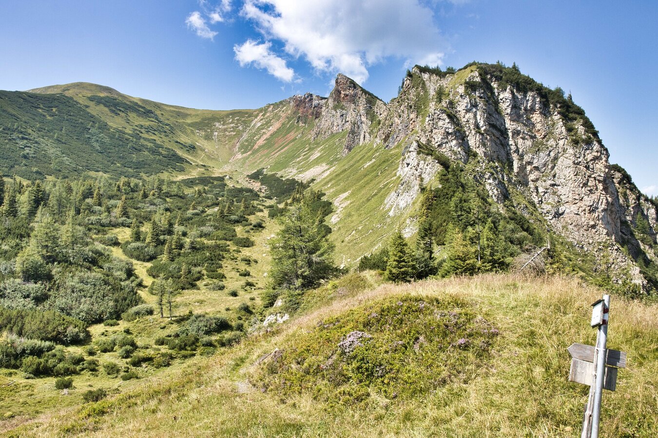 Ausgangspunkt dieser Bergtour ist Wald am Schoberpass. Der Aufstieg verläuft über Waldwege zur Aigelsbrunner Alm, einer traditionellen Halterhütte mit Ausblick auf die