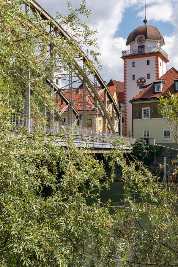 Vom Hauptplatz starten wir in Richtung Schwammerlturm und Waasenvorstadt, wo wir bei der Waasenkirche rechts in die Donawitzerstraße abzweigen. Diese mündet in die Kerpelystraße, die wir nach rund 200 Metern verlassen, beim Bahnübergang biegen wir halbrechts in die Pestalozzistraße ab. Am Ende der Pestalozzistraße, bei der Einfahrt in das Werksgelände der Voestalpine, kehren wir links über eine Bahnübersetzung wieder auf die Kerpelystraße zurück. Dieser folgen wir bis zur nächsten Bahnübersetzung. Anstatt dem R38 in Richtung St. Peter Freienstein zu folgen, biegen wir rechts über die Bahnübersetzung ab und fahren entlang der imposanten Halle des Feinwalzwerkes bis zum Kreisverkehr. Diesen verlassen wir bei der zweiten Ausfahrt in Richtung Tollinggraben. Jetzt geht es durch den unteren Tollinggraben auf einer Schotterstraße einige Kilometer teilweise steil bergan, bis wir beim Bauer im Eck den ersten „Höhepunkt“ dieser Runde mit herrlicher Aussicht erreichen. Durch den oberen Tollinggraben geht es ebenso steil bergab, bis wir beim Schloss Freienstein auf die B115a stoßen.