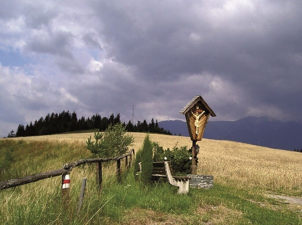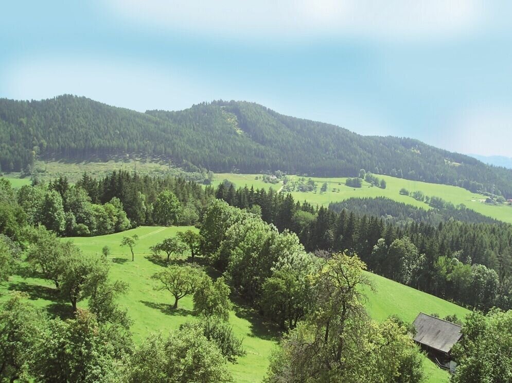 Diese überqueren wir und halten uns anschließend rechts (hinter Autohaus Porsche). Nach einer Linkskurve biegen wir rechts auf einen schmalen Abschnitt des R38 ab. Vorbei am Schloss Friedhofen radeln wir zur Kirche von St. Peter Freienstein und von dort weiter bergauf in Richtung Hessenberg. Vorbei an einer Tennisanlage kommen wir zu einer Kreuzung, bei der wir nicht rechts in Richtung Trabochersee abbiegen, sondern geradeaus in Richtung Niederung fahren. Der steile Anstieg wird mit herrlichen Ausblicken in Richtung Vordernbergertal, Reiting und Liesingtal belohnt. An der höchsten Stelle beginnt eine Querfahrt durch den Wald in Richtung Niederung. Bei der nächsten Kreuzung am Traidersberg zweigen wir aber in Richtung Tal ab. Natürlich genießen wir vor uns den herrlichen Blick auf Leoben.