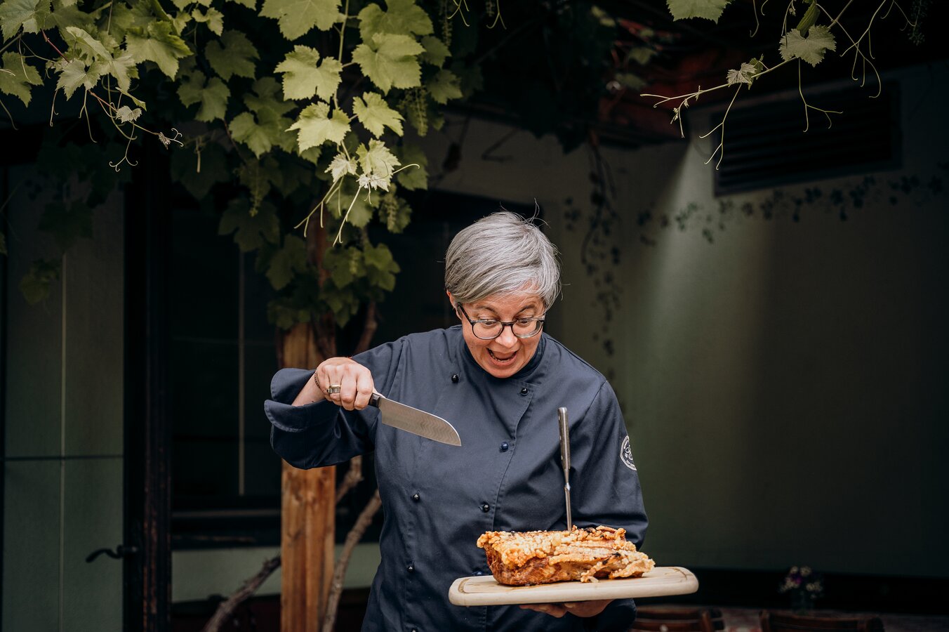 Hinzu kommt, dass sich der Gedanke durchgesetzt hat, wie wichtig es ist, saisonal zu kochen. Spargel gibt’s im Frühling, Eierschwammerl im Sommer, Wildfleisch im Herbst und im Winter wird auf Eingemachtes zurückgegriffen, so wie es immer schon war. Das garantiert, dass nicht nur die Qualität stimmt, die auf Ihrem Teller landet, sondern auch die Frische! Man stelle sich vor: Tiefgefrorene Eierschwammerl – ein heimischer Koch würde eher den Kochlöffel abgeben als Ihnen so was zu kredenzen! Apropos Koch: Damit sind wir bei der nächsten großen Stärke der Küche unseres Landes. Ohne Übertreibung gilt die Kochlehre in Österreich und vor allem auch in der Steiermark als eine der Besten, wenn nicht als die Beste der Welt. Österreichische Köche werden international händeringend gesucht – und als einer, der für ein Gastronomiemagazin gearbeitet hat, kann ich Ihnen sagen: In diese Suche wird von Neuseeland bis in die USA viel Geld investiert. Auch Kreuzfahrtanbieter oder Besitzer privater Jachten schwören auf diese bestausgebildeten Kulinarikexperten. Was uns zur Frage führt, wie Ilse Blachfellner-Mohri zu ihren außergewöhnlichen Kochfähigkeiten gekommen ist. „Wenn du hier in dem Haus als Kind aufwächst, dann kannst du viel ausprobieren, kreativ sein, viele Geschmäcker selber probieren. Und dann bin ich ja auch viel gereist. Und Reisen ist eine gute Gaumenschule. Ich habe sogar in England sensationelle Köche kennengelernt. Ich schwärme für Eintopfgerichte in Nordengland. Dass