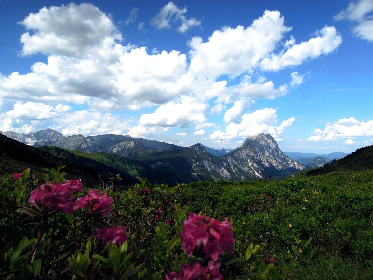 Aternativ kann man von der Neuburgalm auch auf den Gscheidegkogel oder Ochsenriedl wie die Radmerer diesen Berg nennen aufsteigen und den grandiosen Rundumblick in 1788m Höhe genießen.