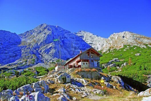 Der Josefinensteig zieht sich westlich der Hesshütte durch einen Latschengürtel und ein Schuttkar. Aufstieg über den teilweise gesicherten Südostgrat. Trittsicherheit und Bergerfahrung unbedingt erforderlich!