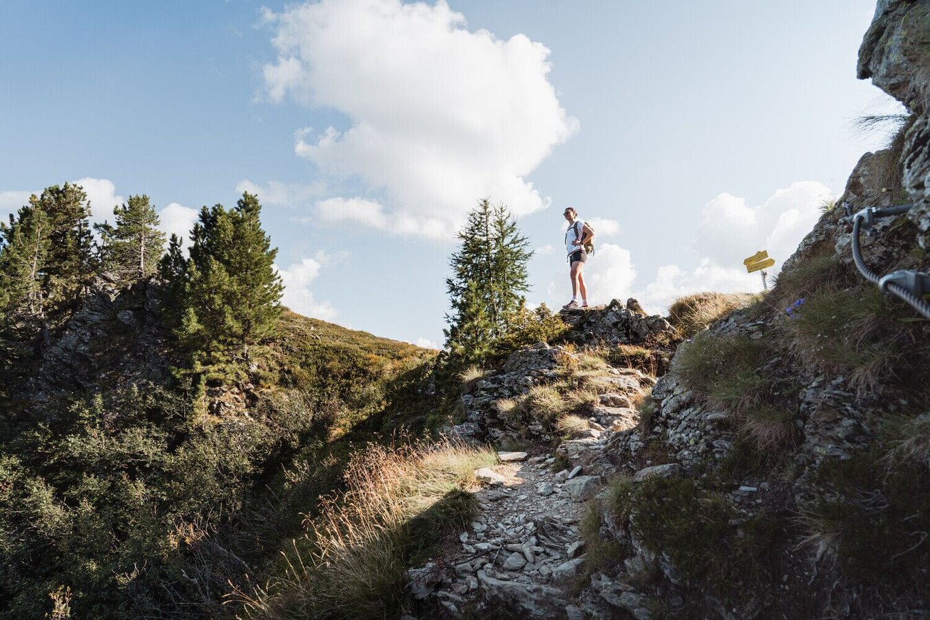 Vom Parkplatz bei der Materialseilbahn folgen wir dem „Pilgerweg der Weltreligionen“ bis zur Rottenmanner Hütte, die wir nach etwa 1,5 Stunden erreichen. Nach einer kurzen Pause auf der Sonnenterrasse folgen wir dem Weg Nr. 944a über den Hirschriedl zur Singsdorfer Alm (ca. 1.600 m). Entlang eines kleinen Baches steigen wir zur Quelle am Bachspreng auf. Rechts geht es weiter unterhalb der steilen Felswände des Moserspitzes bis zur Scharte auf 2.165 m. Nach etwa 30 Minuten und einigen Blockklettereien erreichen wir den Gipfelaufbau, der mit Seilversicherungen ausgestattet ist. Danach folgen wir dem Gratverlauf über Moserspitz, Diewaldgupf und Seegupf, wobei mehrere Gegenanstiege zu bewältigen sind. Vom Seegupf steigen wir über die Seescharte und einen versicherten Steig zum Globuckensee ab. Von dort sind es nur noch 15 Minuten zur Rottenmanner Hütte. Nach einer Stärkung wandern wir in etwa einer Stunde zurück zum Parkplatz.
