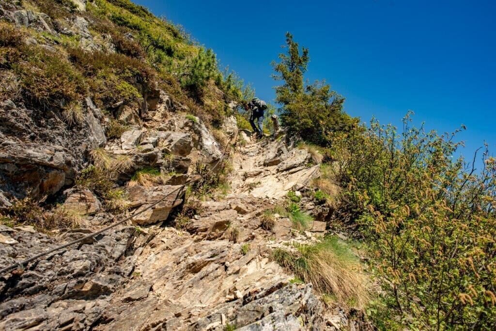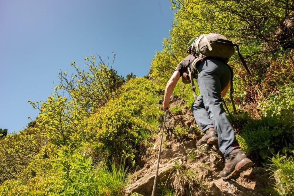 Von dort aus erreichst Du entlang des Wanderweges Nr. 944 in etwa 1h50 die Talstation der Materialseilbahn.