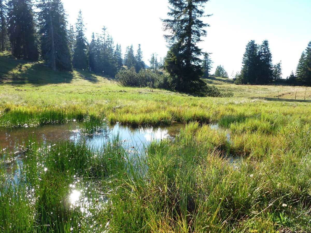 Anfangs führt noch eine Asphaltstraße bis diese auf eine Schotterstraße überläuft bis ins Lurg. Wenn wir am Talschluss ganz hinten im Lurg angekommen sind, zweigt ein Steig ab; erst kürzt er nur die Forstrasse ab, dann geht es wirklich steil bergauf. Hinauf zur Pumperlhochalm (privat) und durchs Bärenloch gehen wir bis zur eh. Heimmoseralm 1420 m ~ jetzige Radstadtmoaralm. Die Almwiese führt ein Stück bergab und wieder bergauf, wir befindet uns am Kl. Buchberg und sollten unbedingt noch das Almenplateau entlang wandern, um auf den Buchberg 1563 m ganz hinaus und hinauf zu gelangen. An sonnigen Tagen haben wir eine wunderbare Fernsicht.