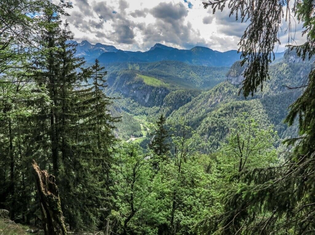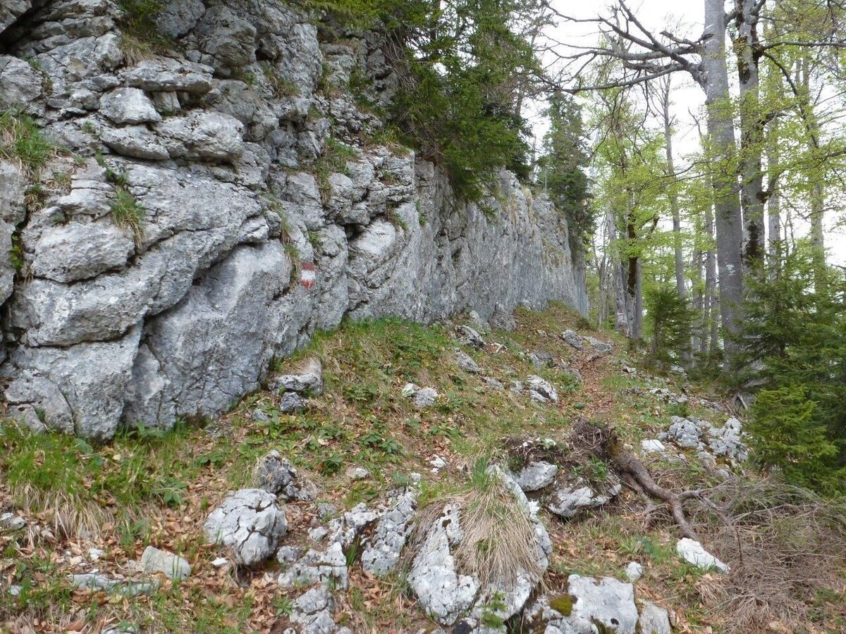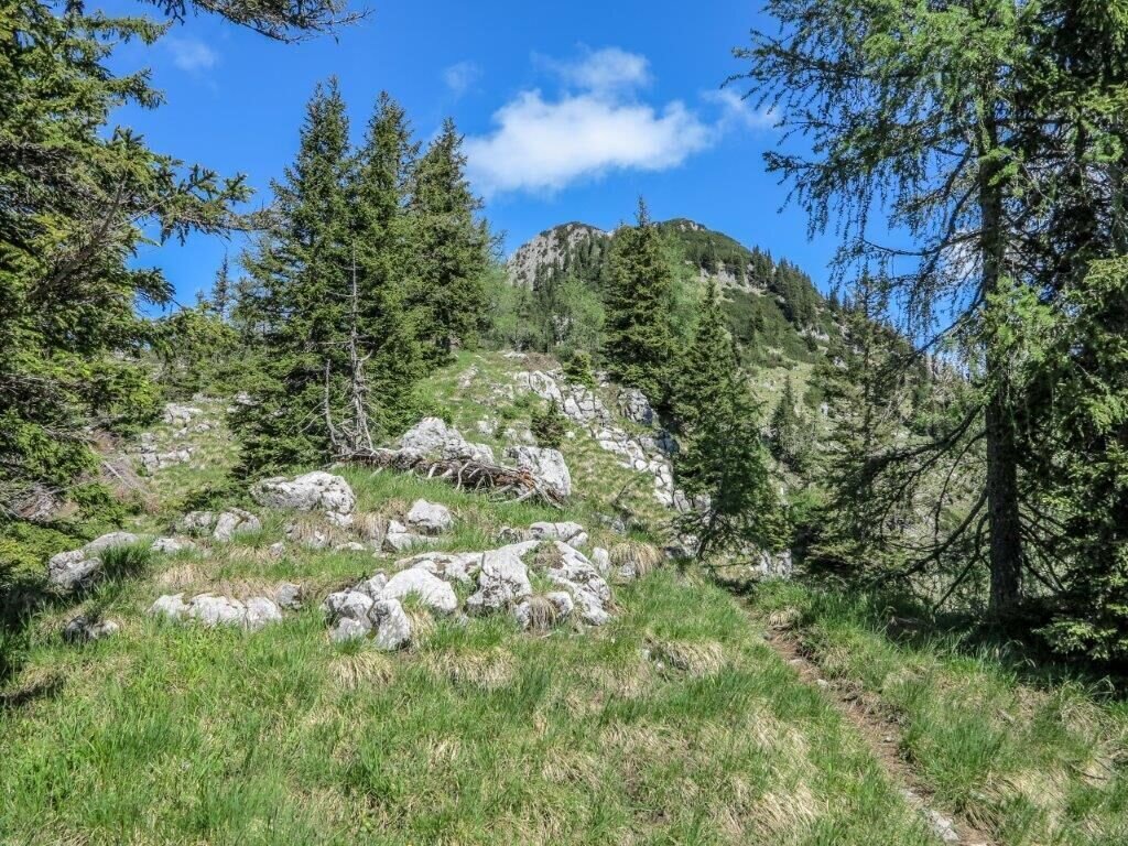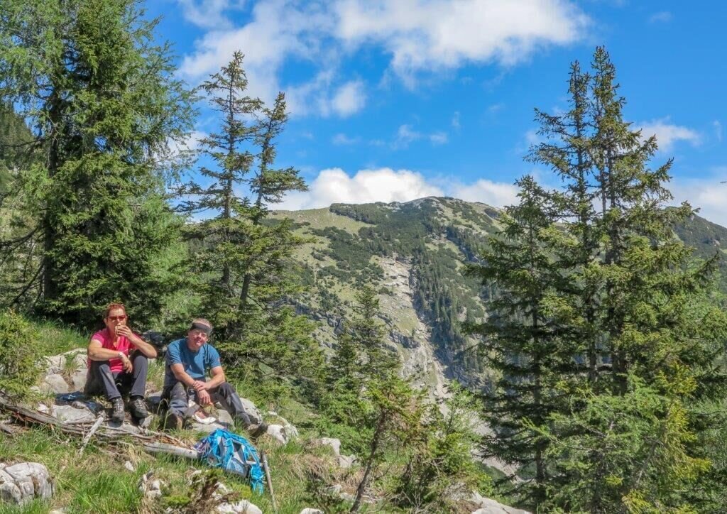 Ausgehend von Fachwerk in Wildalpen im Steirischen Salzatal führt uns der Weg stetig bergwärts in sehr blickdichtem Wald. Richtig kuschelig und aussichtslos führt der Weg nach oben. Vorbei an der Klagemauer erreichen wir nach ca. 3,5 h +/- Gehzeit endlich einen Jausenridl. Wir erkennen ihn an der erstmals besseren Aussicht auf einem Ridl (hochdeutsch: Miniberg). Der Jausenridl zwingt so Manchen zur Umkehr, da die Wadl bereits brennen. Tun sie es nicht, sollte wir hier keineswegs umdrehen; denn der lohnende Abschnitt kommt erst.