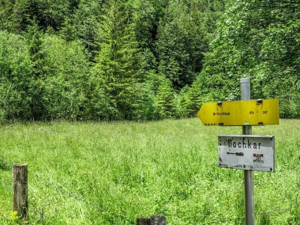 Nun folgen wir der Beschilderung vorbei am Geischlägerhaus zum Hochkargipfel.