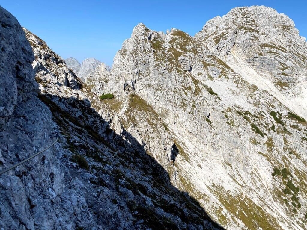 Der Hexensteig (Schwierigkeit B/C) ist eine markierte, teils versicherte Route, die vom Admonterhaus aus über den Grat zur Rosskarscharte und weiter zum Hexenturm führt. Die Tour kombiniert Gehgelände mit kurzen Kletterstellen (bis II+), die durch Stahlseile entschärft sind. Besonders reizvoll ist die Gratführung, die immer wieder spektakuläre Ausblicke ins Bärenkar und auf die umliegenden Gipfel freigibt. Wer noch Kraft und Lust hat, kann vom Ausstieg in wenigen Minuten den Gipfel des Hexenturms (2.172 m) erreichen – ein lohnender Abschluss mit Panoramablick. Gesamtgehzeit: ca. 3 Stunden.