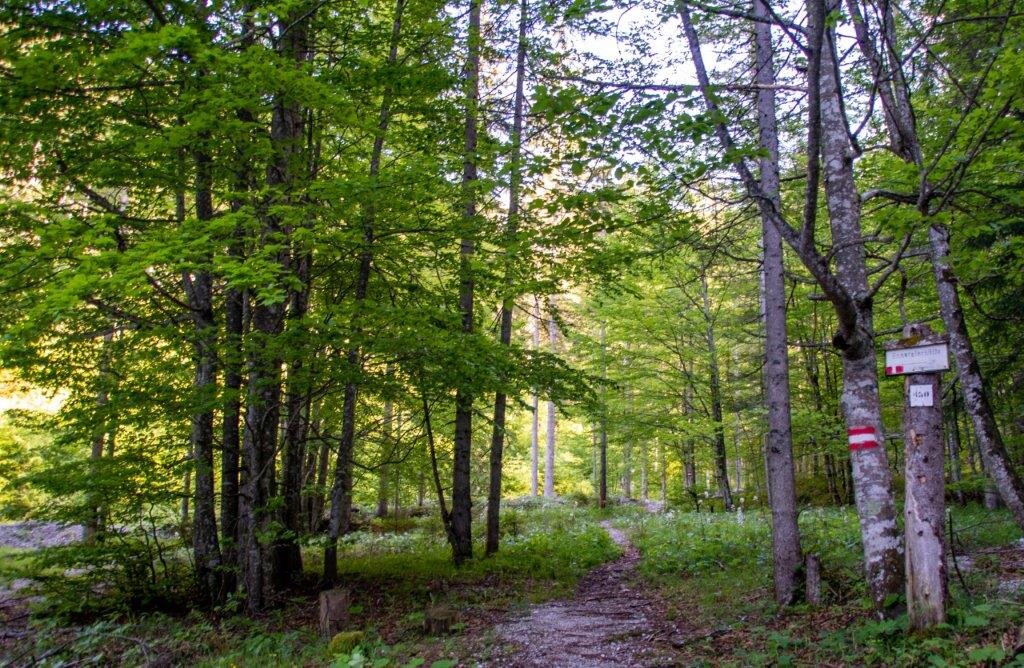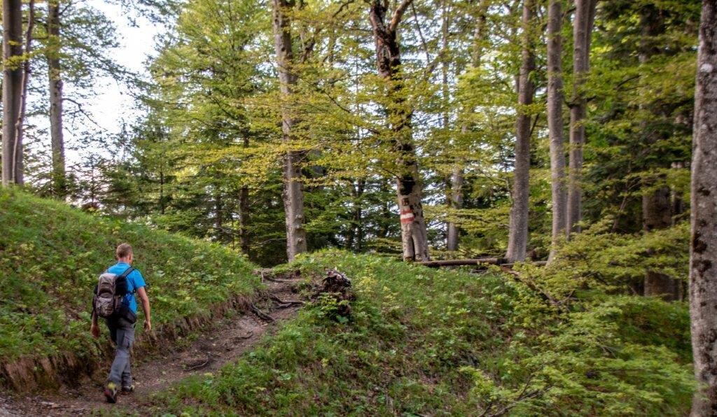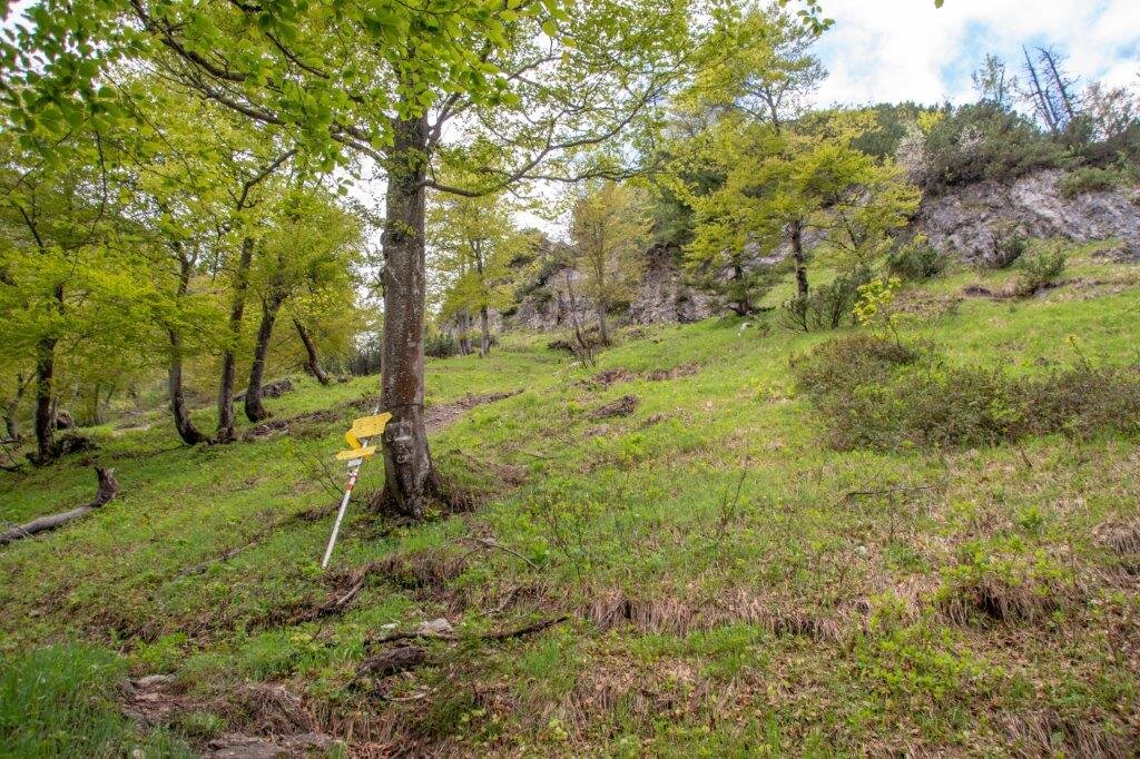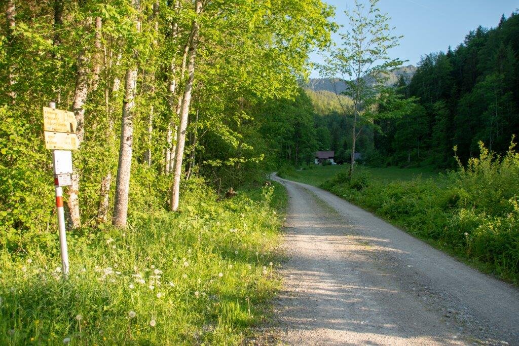Am höchsten Punkt am Erbsattel sieht man rechts das Schloß Kassegg und wenig später ist rechts die abzweigung auf den Wanderweg.