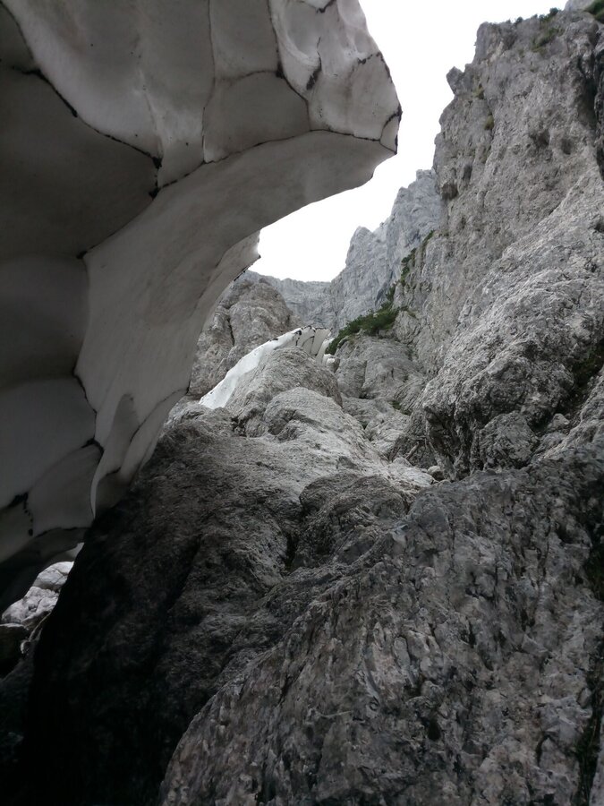 Dieser führt ab der Haindlkarhütte erst über einen Steig durch Schutthänge, wo besondere Vorsicht geboten ist, da der Steig nach Gewittern oft durch Rutschungen erschwert passierbar ist. Schließlich erreichen wir Felsgelände und kommen zum berühmten "Ennstaler Schritt", die Schlüsselstelle des Weges, wo ein Felsbrocken umstiegen wird und man dabei schaurige Tiefblicke erlebt. Über die Peternscharte, den tiefsten Punkt in der Silhouette des Hochtors, steigen wir auf Weg 663 hinunter zur Hesshütte. Da wir seit der Haindlkarhütte schon gut 4 Stunden unterwegs sind, kehren wir gerne beim Hüttenwirt ein und genießen die heimische Küche und ein kühles Getränk. Jetzt gehen wir nochmals weitere 2 Stunden am Wanderweg über Stadlalm und Koderalm hinunter nach Johnsbach.