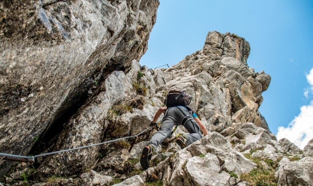 Gut angelegter Klettersteig auf den Gipfel der Tieflimauer 1820m.
