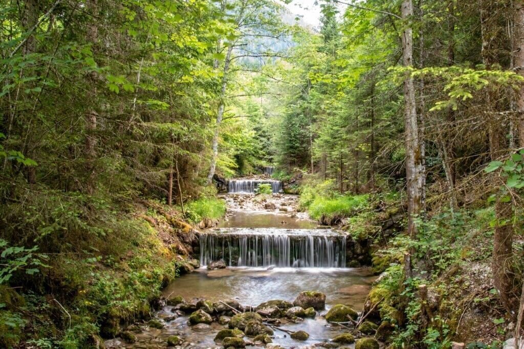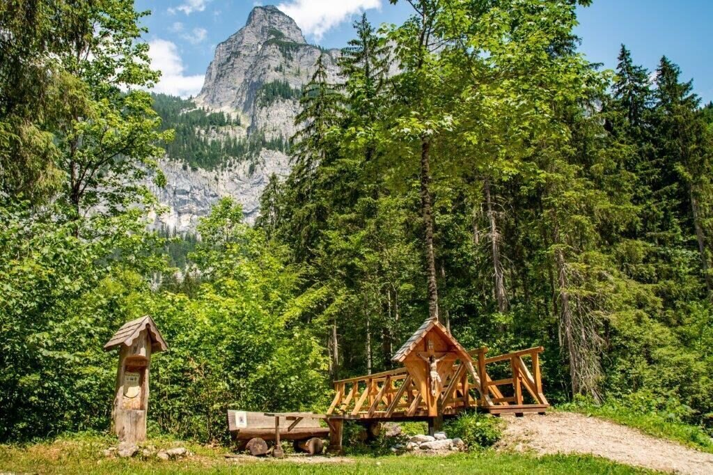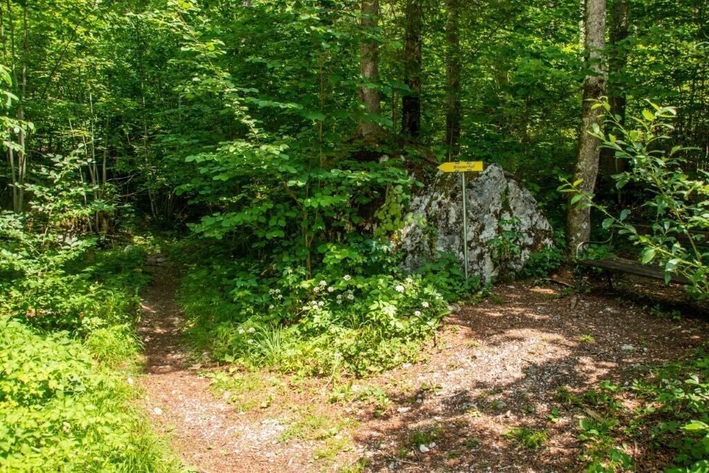 Beim Parkplatz am Tennisplatz gehen wir retour bis über das kleine Brückerl wo wir Links das Tal hinein gehen. Immer der Straße nach bis wir beim Moserbründl vorbei kommen. Den ersten Teil gehen wir auf einsamer Landstraße bis zur Moserkapelle, von hier rechts auf einer Forststraße. Bald biegen wir kurz bevor die Straße einen Rechtsknick macht, ganz unscheinbar in einen kleinen Steig in den Wald ab. Der idyllische Waldweg führt uns bis zum Wasserfall . Am Weg retour zuerst auf Forststraßen. Nicht Vergessen den Abstecher zum Ursprungsbankerl den Bach entlang.