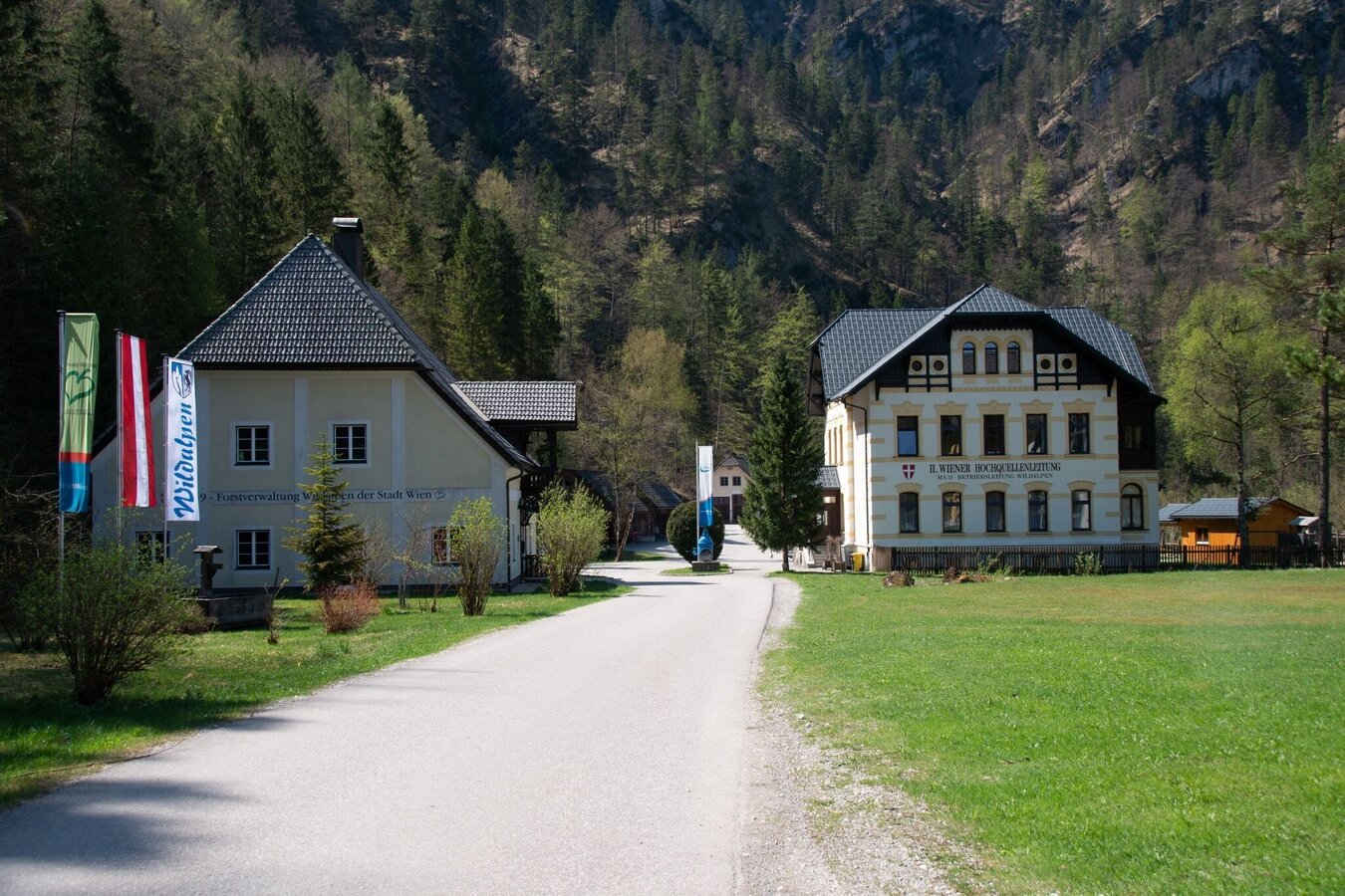 Aus Wien: A1 Westautobahn Abfahrt Ybbs über Wieselburg, Scheibbs und Lunz/See nach Göstling an der Ybbs weiter in Richtung Palfau, an der Kreuzung Erzhalden abbiegen nach Wildalpen.