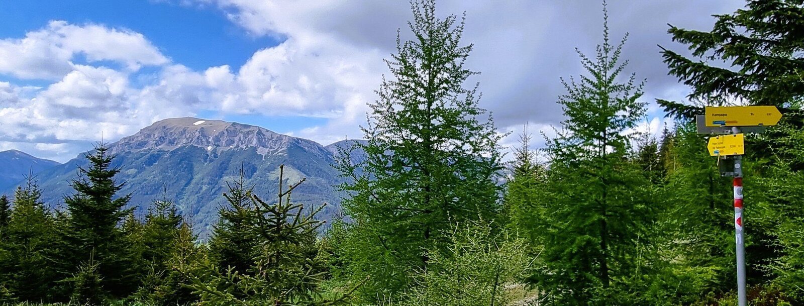 Retour am Semmering beginnt der Anstieg bei der Pfarrkirche unweit des Hotel Panhans in westlicher Richtung zum Pinkenkogel (Schutzhaus leider geschlossen). Nun immer am oft bewaldeten Bergrücken entlang (markierter Wanderweg) in stetigem Auf- und Ab bis zum Gipfelkreuz der Kampalpe mit einem herrlichen Panoramablick ins Mürztal und zum Stuhleck.
