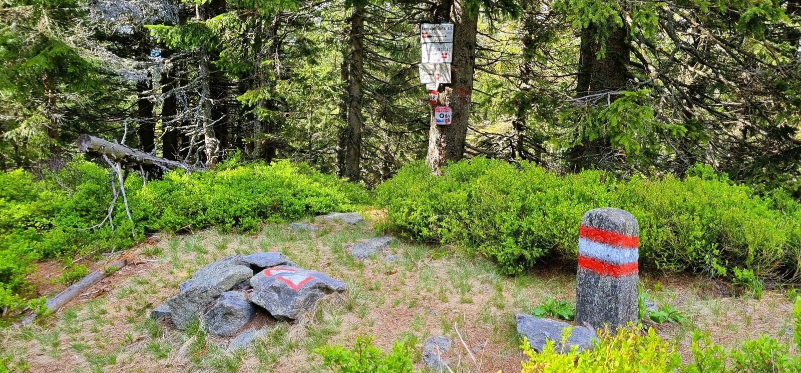 Nun wendet sich der Weg etwas nach Norden und überquert den 1.565m hohen Drahtekogel (höchster Punkt der Tour, Gipfel allerdings bewaldet).