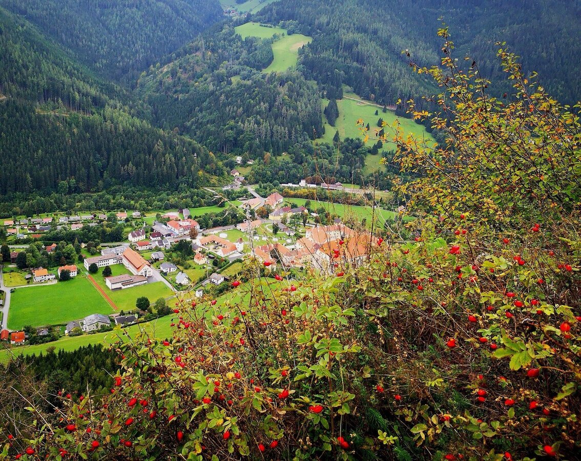 Ganz Eifrige können beim Neuberger Münster auch noch den Rabenstein besteigen und dort die herrliche Aussicht genießen: https://regio.outdooractive.com/oar-steiermark/de/tour/wanderung/auf-den-rabenstein-bei-neuberg-im-naturpark-muerzer-oberland/32386134/