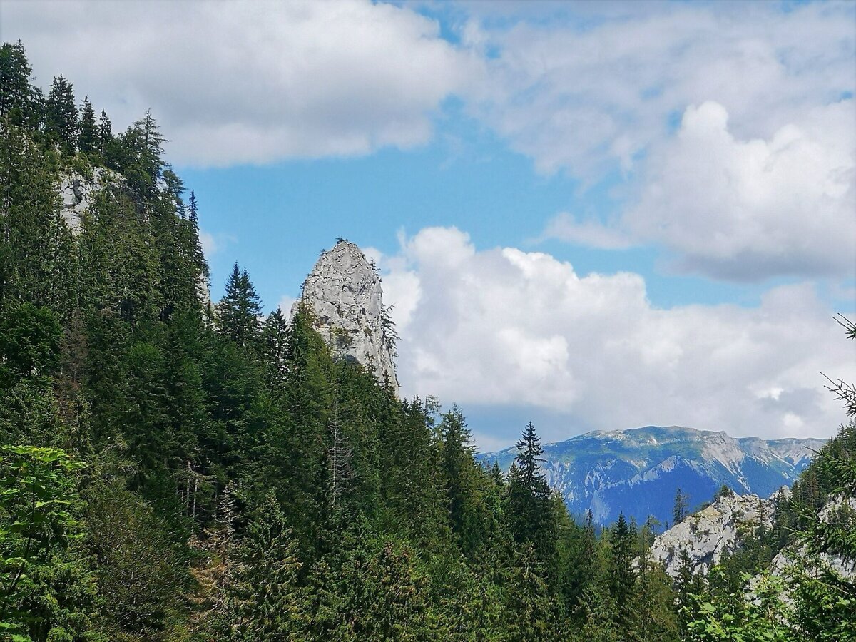 Im klammartigen Dürrntal geht es aufwärts bis zu einer idyllischen Lichtung unterhalb der Geierwandl´n. Ab hier beginnt ein etwas verwachsener, aber aussichtsreicher Steig, der rasch auf die Kleinveitschalm führt.