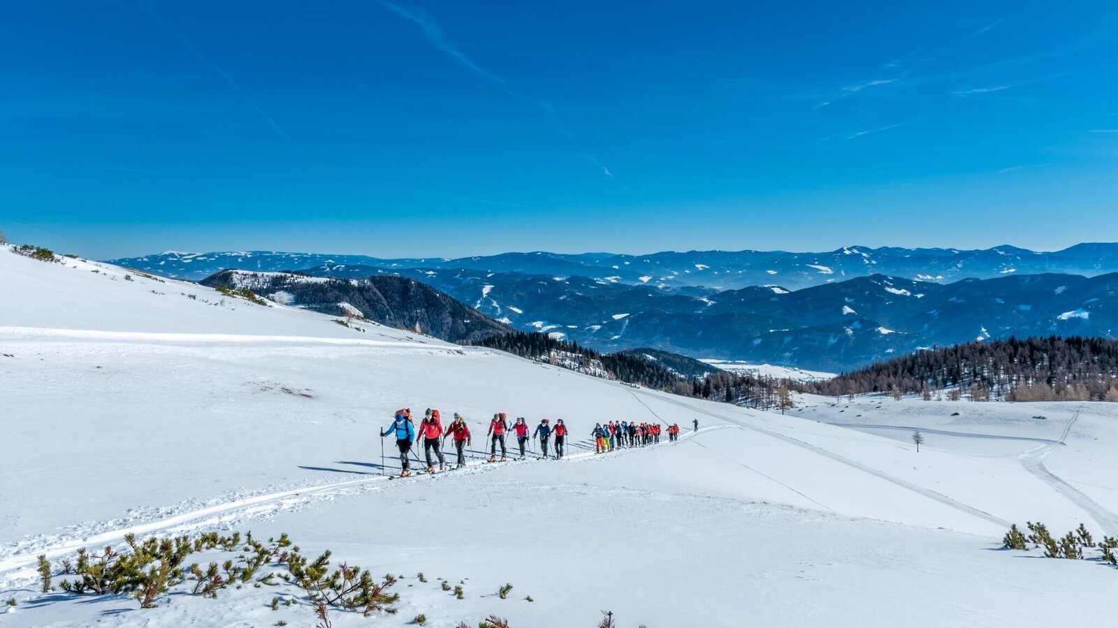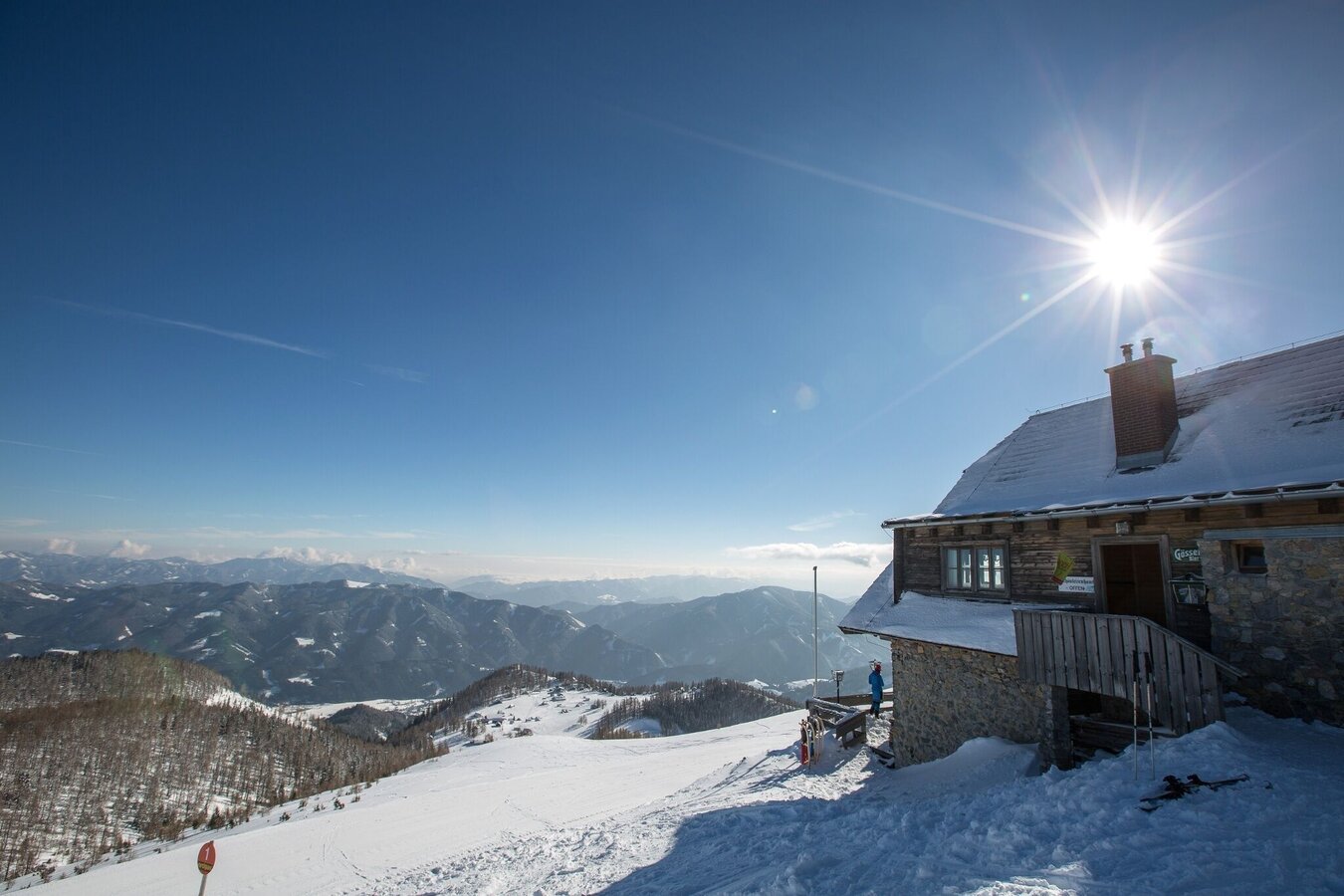 Am Almboden Richtung Schönleiten. Von dort dem Skiweg folgend zum "Paradies" und weiter über die Windgrube, mit herrlichem Panoramablick Richtung Hochschwabmassiv, zum Schönleitenhaus (1810 m). Abstieg über Tiefschneepisten zum Ausgangspunkt.