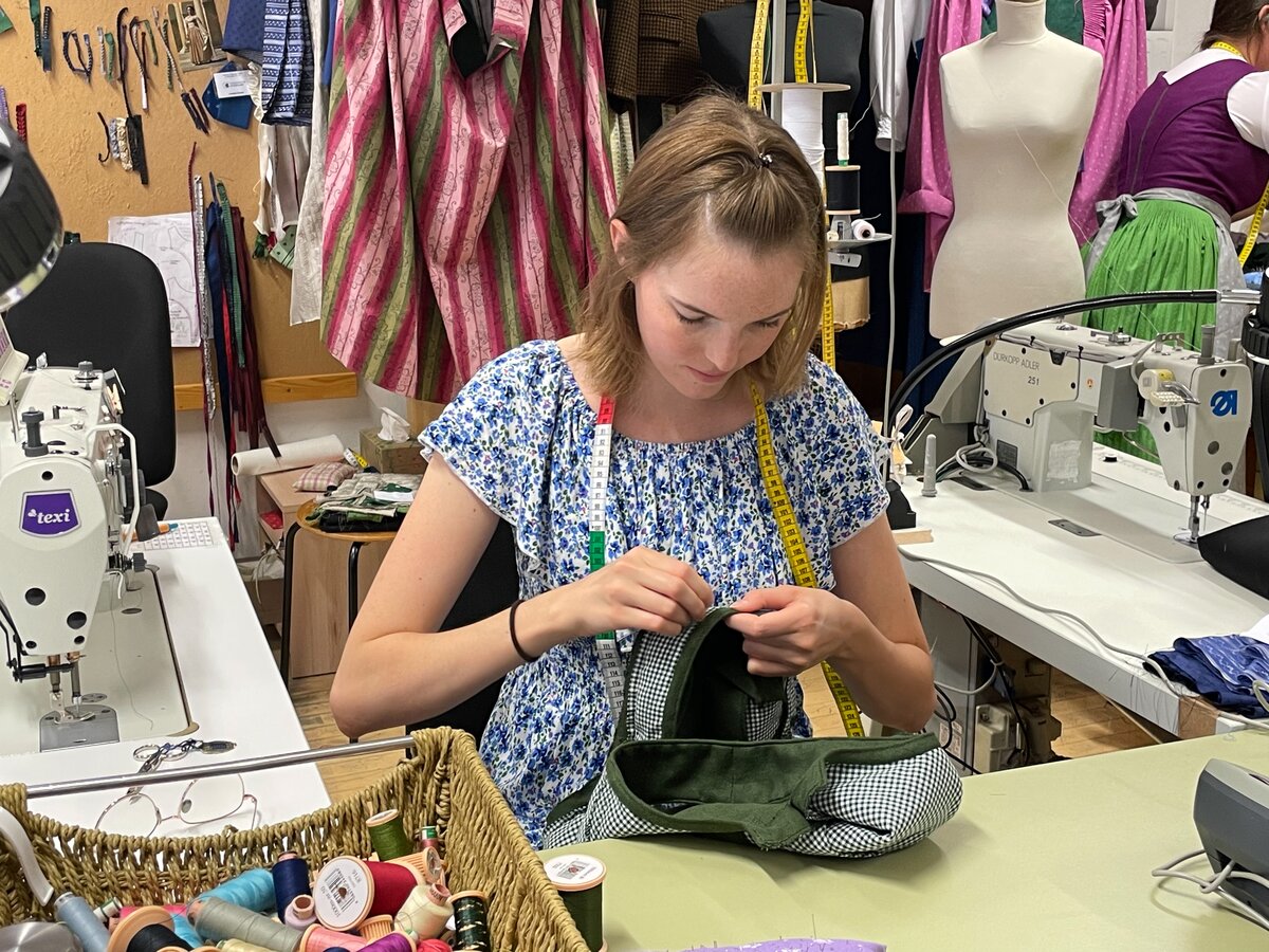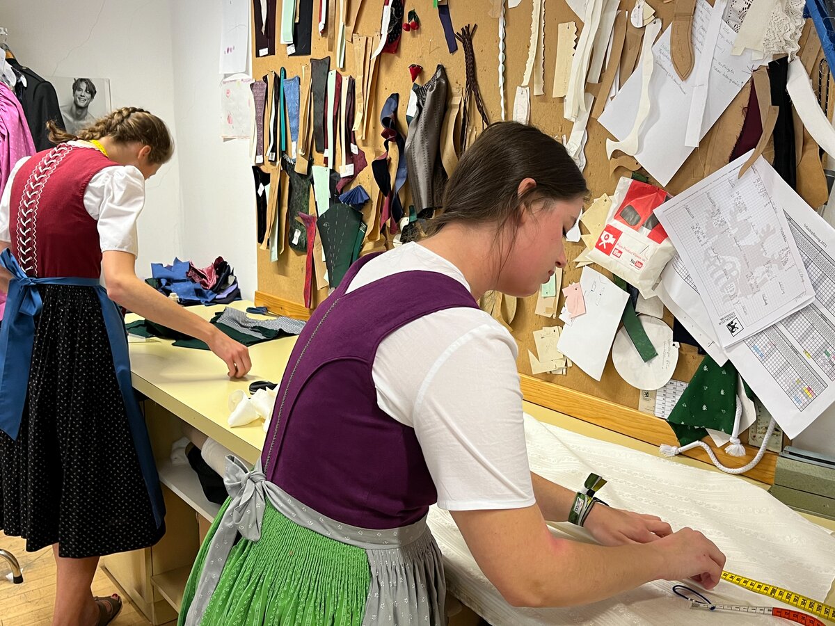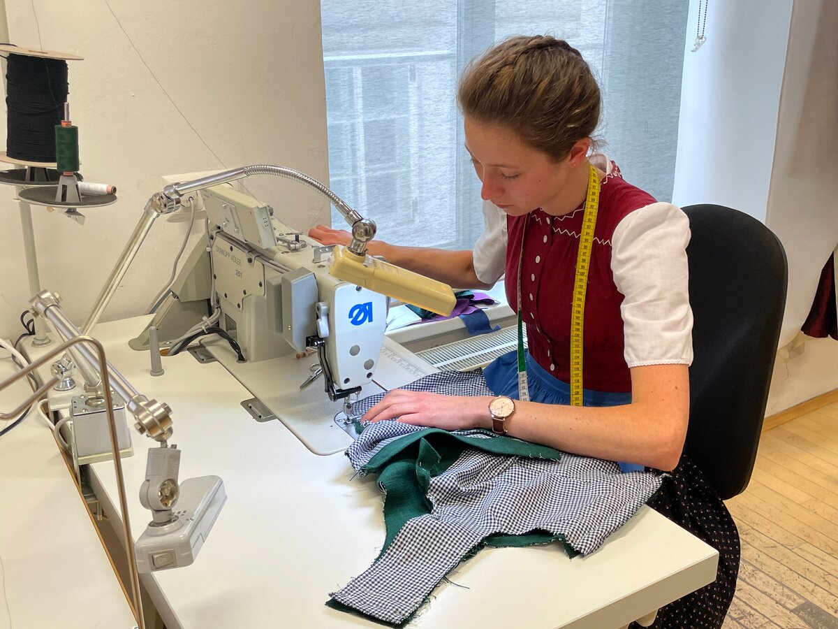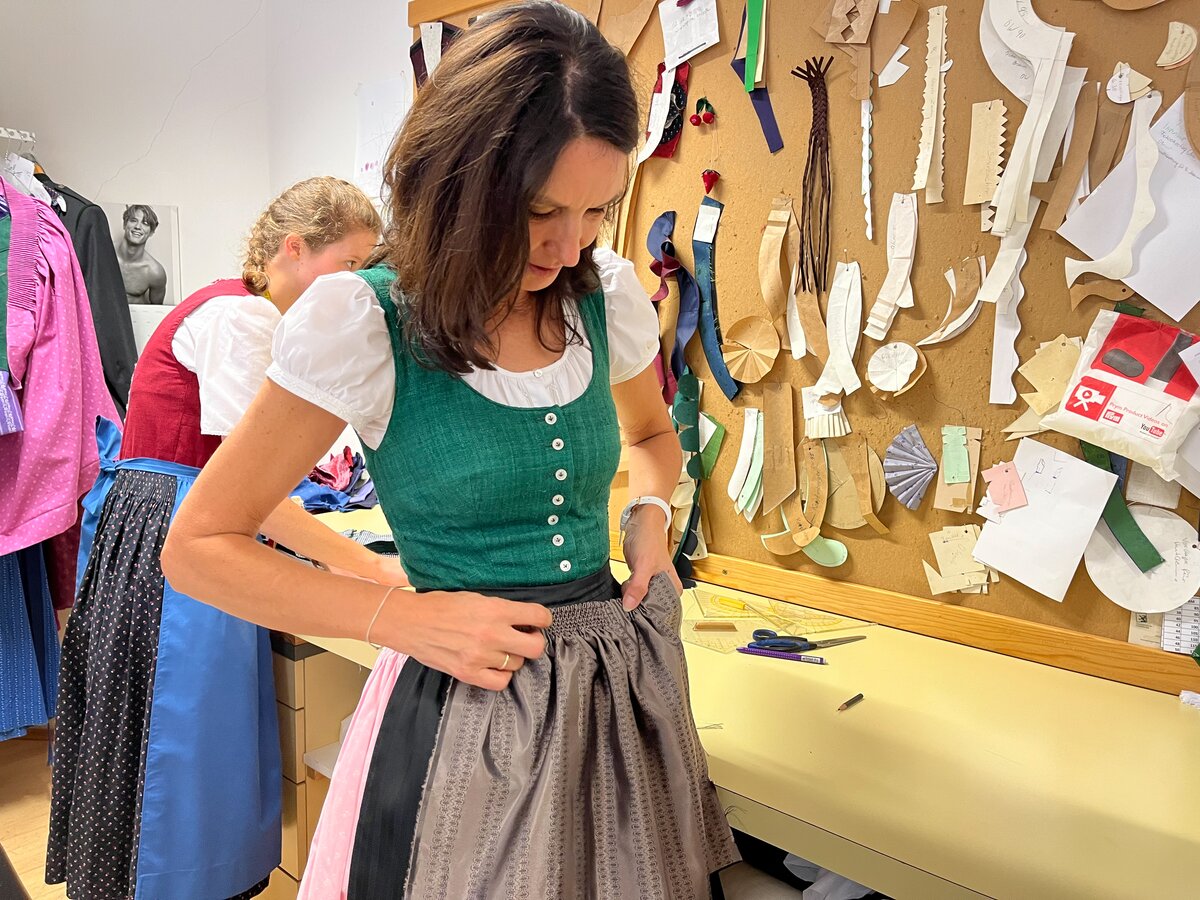 Um ein Dirndl zu schneidern und das Handwerk zu beherrschen, braucht es großes Fachwissen und jahrelange Erfahrung. Aktuell sind im Heimatwerk acht Schneiderinnen beschäftigt. Von ihnen erfahren wir, dass zwischen drei Arten von Dirndln unterschieden wird: Der Alltagstracht, die meist aus Leine oder Baumwolle gefertigt wird, der etwas aufwendigeren Sonntagstracht und der Festtagstracht für besondere Anlässe.