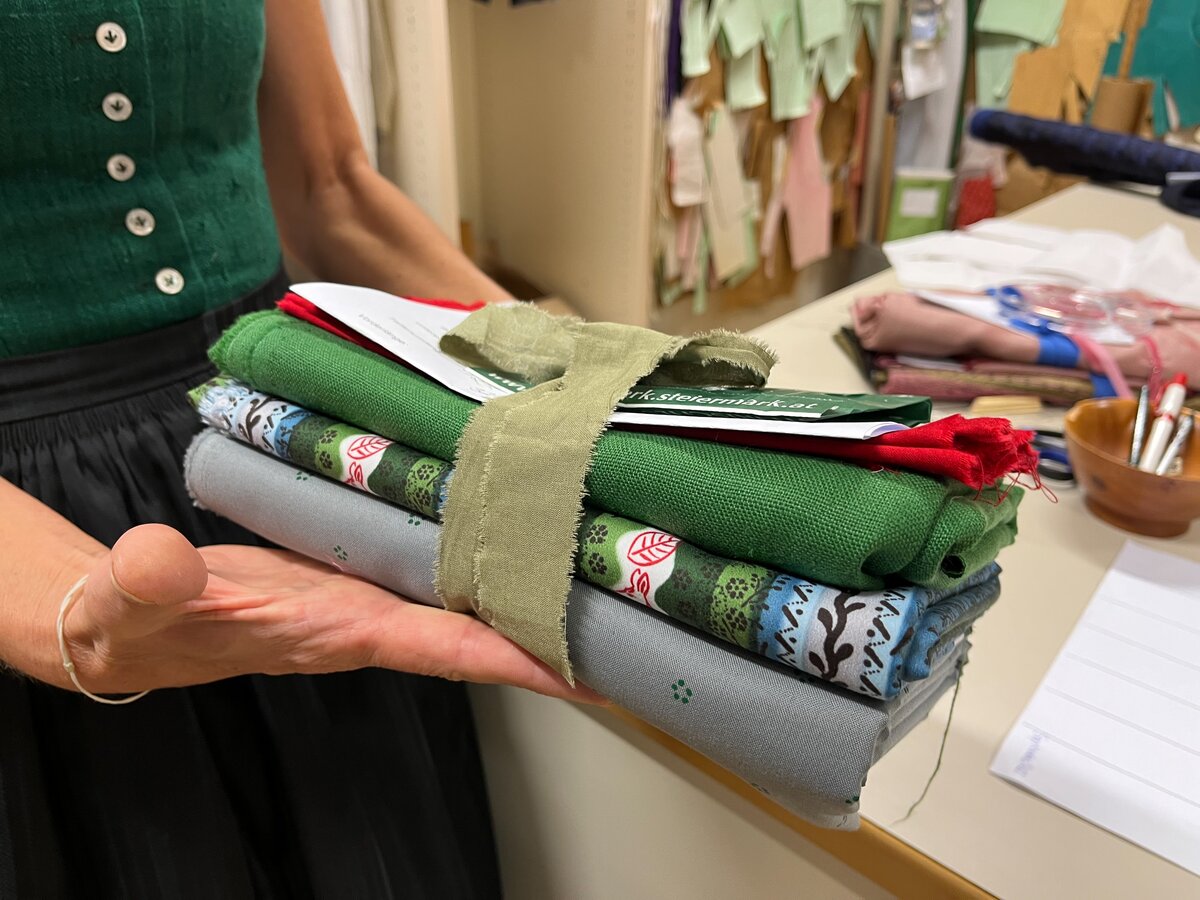 Mitten drin: Simon Koiner und Anita Schmid. Die beiden haben gerade jede Menge zu tun, als wir sie an ihrem Arbeitsplatz besuchen. Denn im Heimatwerk wird von der Stoffauswahl über das Maßnehmen bis hin zur Anfertigung von traditionellen Trachten noch alles per Hand gemacht. Die Materialien dazu - Loden, Seiden, Knöpfe und vieles mehr - kommen aus sämtlichen steirischen Regionen und werden mit großem handwerklichen Geschick in der hauseigenen Schneiderei verarbeitet. "Wir haben hier in der Steiermark 315 verschiedene Frauentrachten und rund 100 Männertrachten, die alle über einen eigenen Schnitt oder besondere Details verfügen", erzählt Simon Koiner. Dazu kommt noch eine enorme Auswahl an Auszier (Stickereien bzw. dekorative Elemente, die das Dirndl schmücken) und passenden Accessoires.