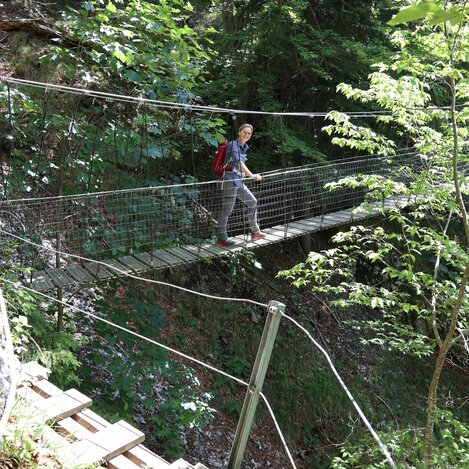 Höhlen, Hängebrücken und Seile. Diese Tour ist eine der schönsten und aussichtsreichen Wanderungen der Region. Die Wanderung startet in Naas beim Parkplatz für den Jägersteig und führt gleich zu Beginn recht steil hinauf. Über Stock, Stein und Eisentreppen geht es Höhenmeter für Höhenmeter hinauf auf den Jägersteig, über die Herdplatte bis zum Rablgrat-Dachl. Dort angekommen wandert man etwas bergab. Schließlich gelangt man über die Hängebrücke bis zum Ziel auf der anderen Seite der Weizklamm.
