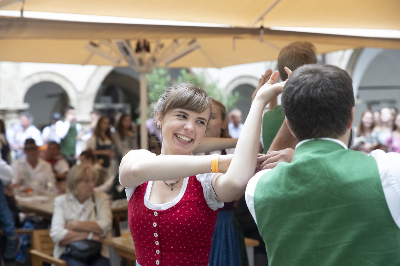 Wer bei so viel Brauchtum und Volkskultur gerne selbst einmal das Tanzbein schwingen möchte, hat im Burghof die Gelegenheit dazu. Unter der erfahrenen Leitung von Tanzprofi Claudia Eichler wird etwa die steirische Fächerpolonaise einstudiert. Tanzworkshops und offenes Tanzen stehen ebenfalls am Programm. Nicht verpassen!