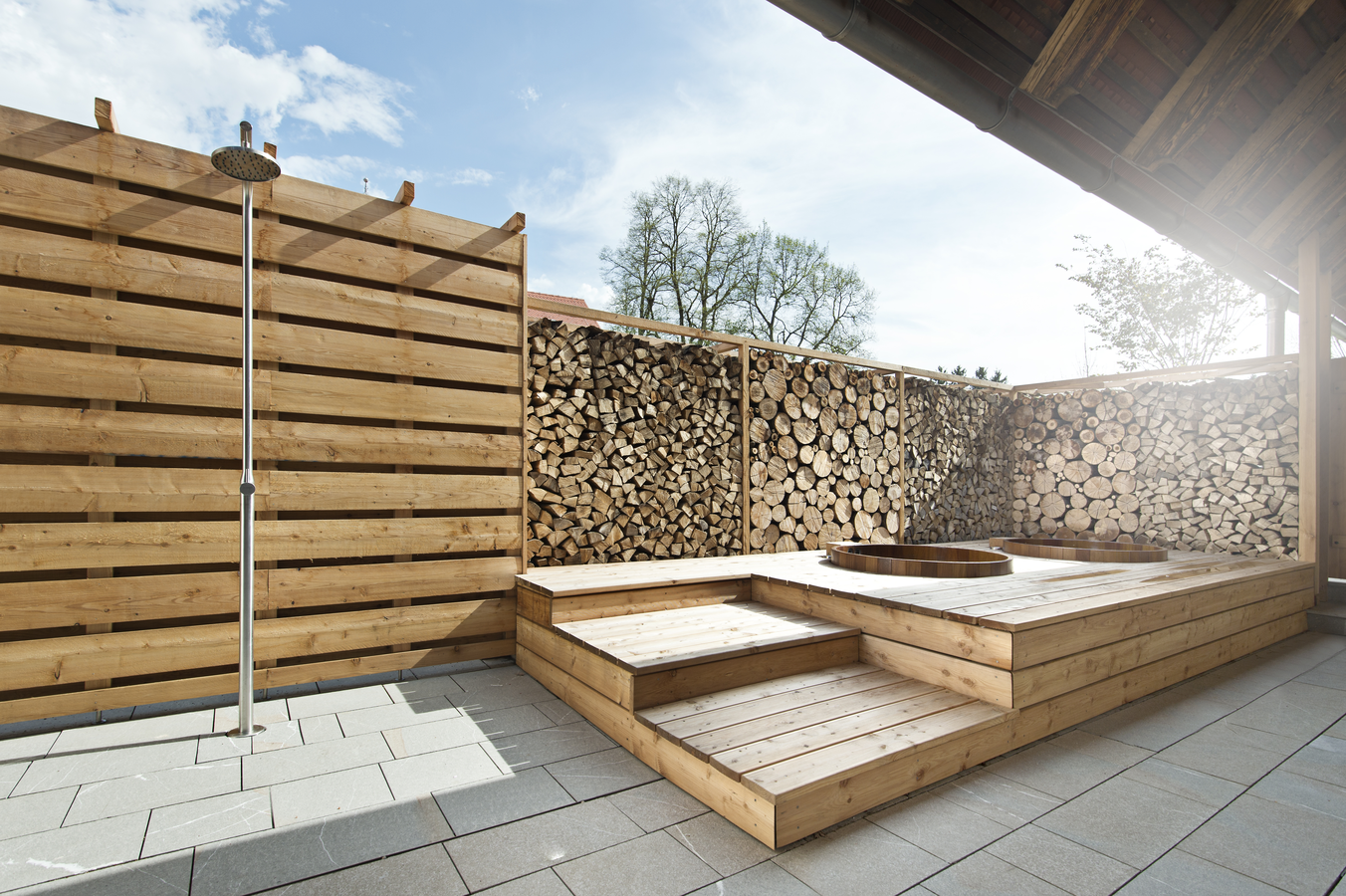 Schönstes Herbst-Platzerl: die gemütlichen Sonnenliegen im Außenbereich des Wellness-Paradieses. In der Herbstsonne lässt es sich hier ganz wunderbar relaxen, träumen und – nichts tun. Hinlegen, abschalten und auftanken!