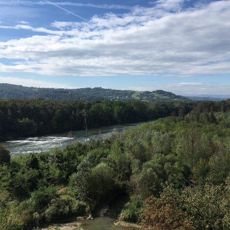 Nach gut einer Stunde radelt der Gast entlang der Gosdorfer Murauen im Herzen des Natura 2000 Europa Schutzgebietes – übrigens das größte Auengebiet der Steiermark. Ohne Gegenverkehr oder Straßen inmitten einer traumhaften Naturkulisse fällt einem sofort der Murturm auf, eine Aussichtswarte mit einer Gesämthöhe von 27,5 Metern. Man sollte es sich nicht nehmen lassen und den Turm mit seinen 168 Stufen erklimmen, denn oben angekommen wird man mit einem traumhaften Ausblick belohnt.