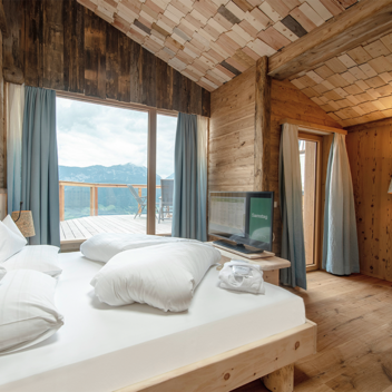 Schlafen heißt entspannen, so das Motto für die modern und gemütlich eingerichteten Zimmer, Suiten und Sky Chalets. Hier gibt es ein Geheimnis, das gar nicht so geheim ist und das nennt sich Zirbe 😊