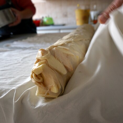 Hier wird nicht nur der Strudelteig geknetet
