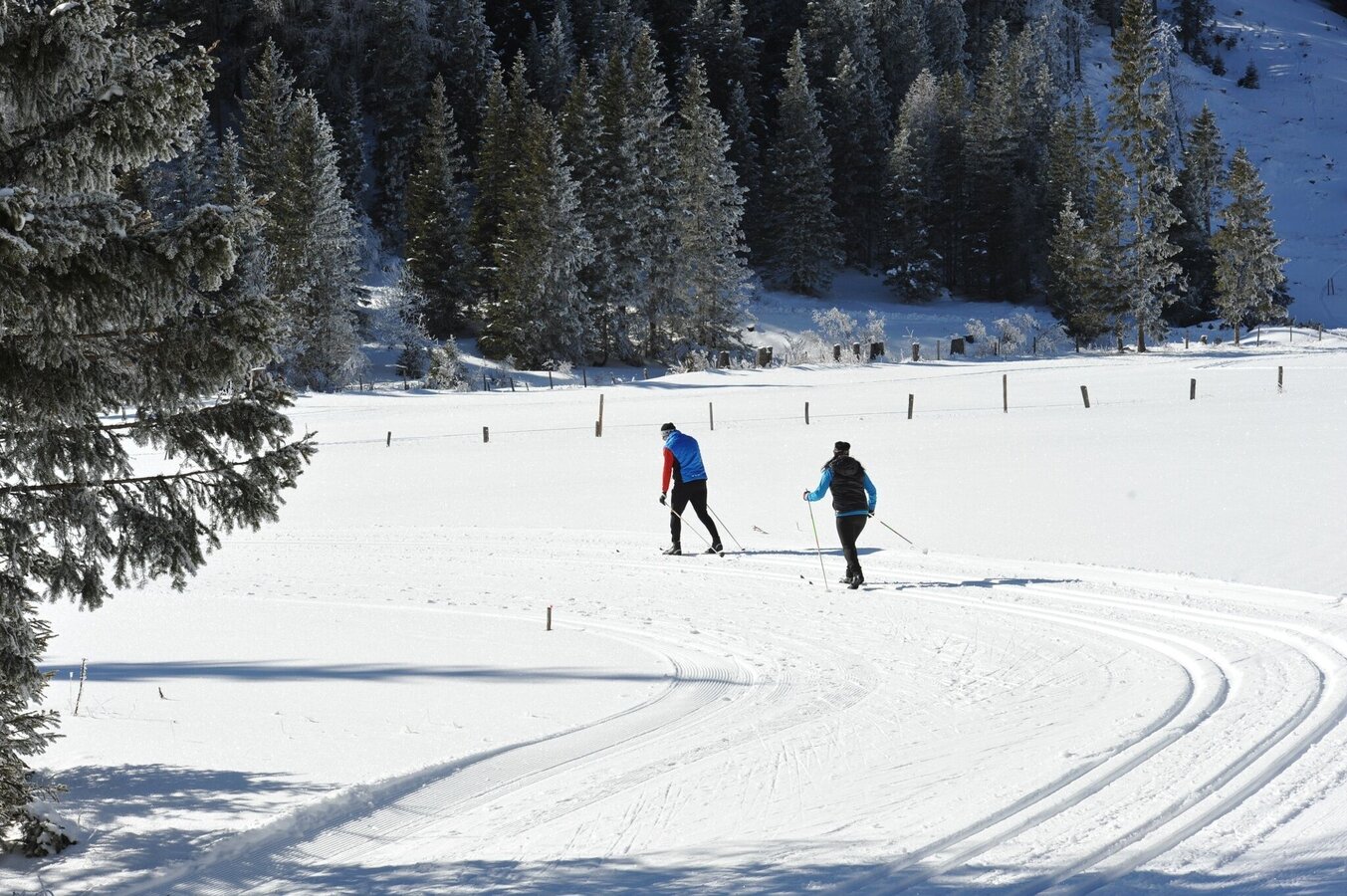 Folgen Sie der ausgeschilderten Langlaufloipe.