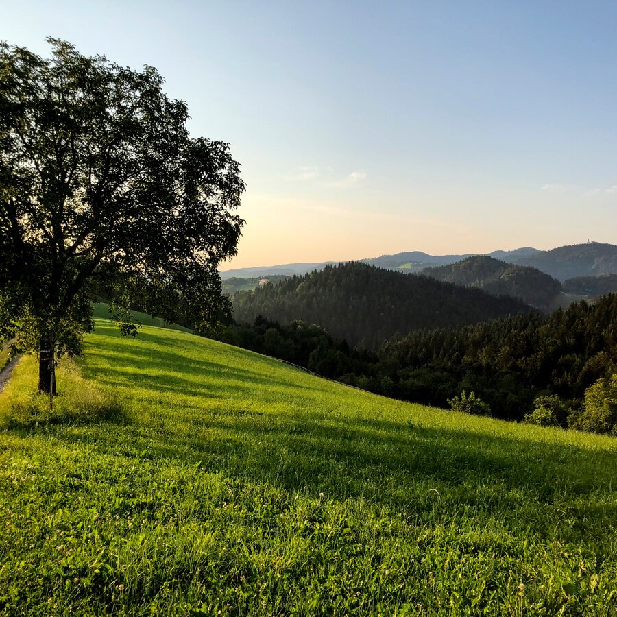 Hier macht der Weg abermals eine scharfe Kurve - diesmal nach rechts Richtung Osten - und führt uns nun immer bergab durch den Kammerwald nach Zeutschach, wo uns eine Besonderheit erwartet: die Zeutschacher Ursprungsquelle, die auch ein "NaturLese-Platz" an der Via Natura darstellt. Die Zeutschacher Ursprungsquelle ist eine typische Karsterscheinung und verzeichnet eine Schüttung von 90 - 120 Liter pro Sekunde. Das reine, sauerstoffreiche Wasser begünstigt einen interessanten Pflanzenwuchs. So blüht unter Wasser der haarblättrige Hahnenfuß, während der Wasserhahnenfuß seine weißen Blüten über die Wasseroberfläche hebt. Wäre sie nicht von einer Birke und ein paar Bänken sowie dem "NaturLese-Platz" gesäumt, man würde beim Wandern über die Wiese in den magischen Ort einfach hineinstolpern, so unscheinbar und gleichzeitig beeindruckend ist dieser Kraftplatz im Naturpark Zirbitzkogel-Grebenzen.
