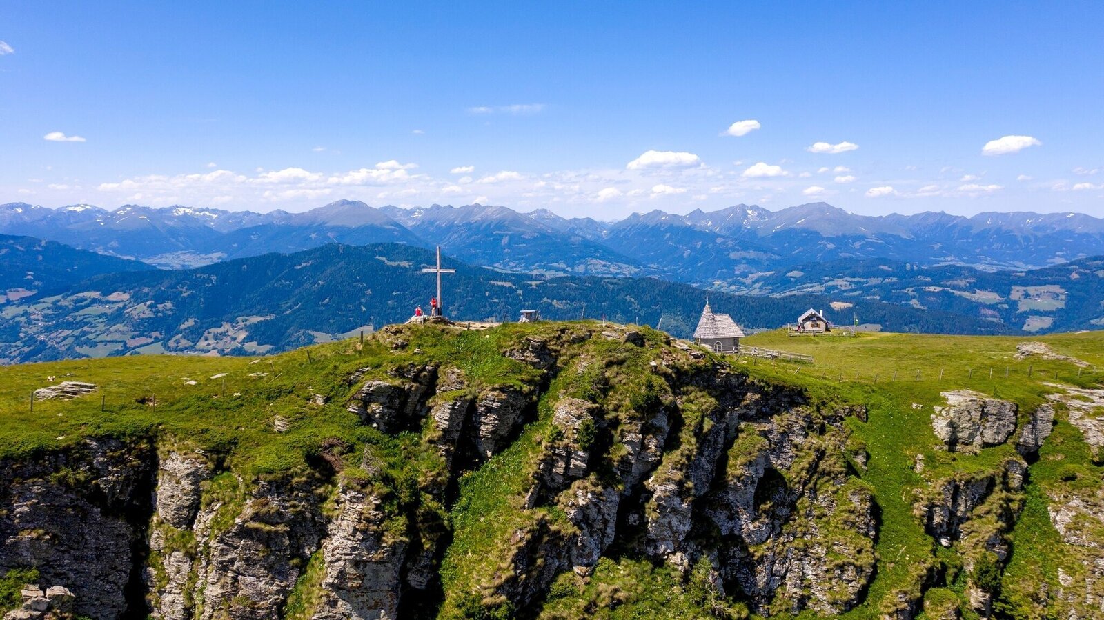 Auf dem Gipfel der Frauenalpe angekommen, wird man mit einem fantastischen Ausblick auf das Bergpanorama der Region Murau und darüber hinaus belohnt.