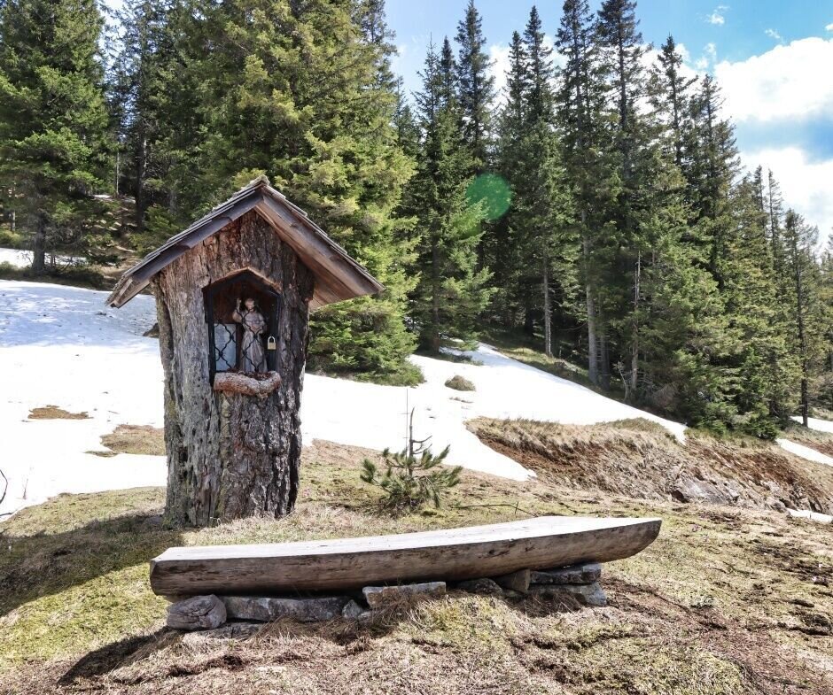 Der erste Wegpunkt ist ein Marterl auf 1574 m, danach geht es leicht bergab, bis wir rechts den Einstieg in den Wald sehen. Pfade und Forststraßen wechseln sich ab, bei der Wegkreuzung "Sattelhaus/Steinplan" wandern wir links weiter. Kurz nach dem Krennsattel steigt der Weg fortdauernd an, bis wir den Steinplan (1670m ) mit dem nahegelegenen Schutzhaus erreichen. Nach eine Pause am Steinplan gehen wir gut gestärkt wieder zurück zum Gaberl.