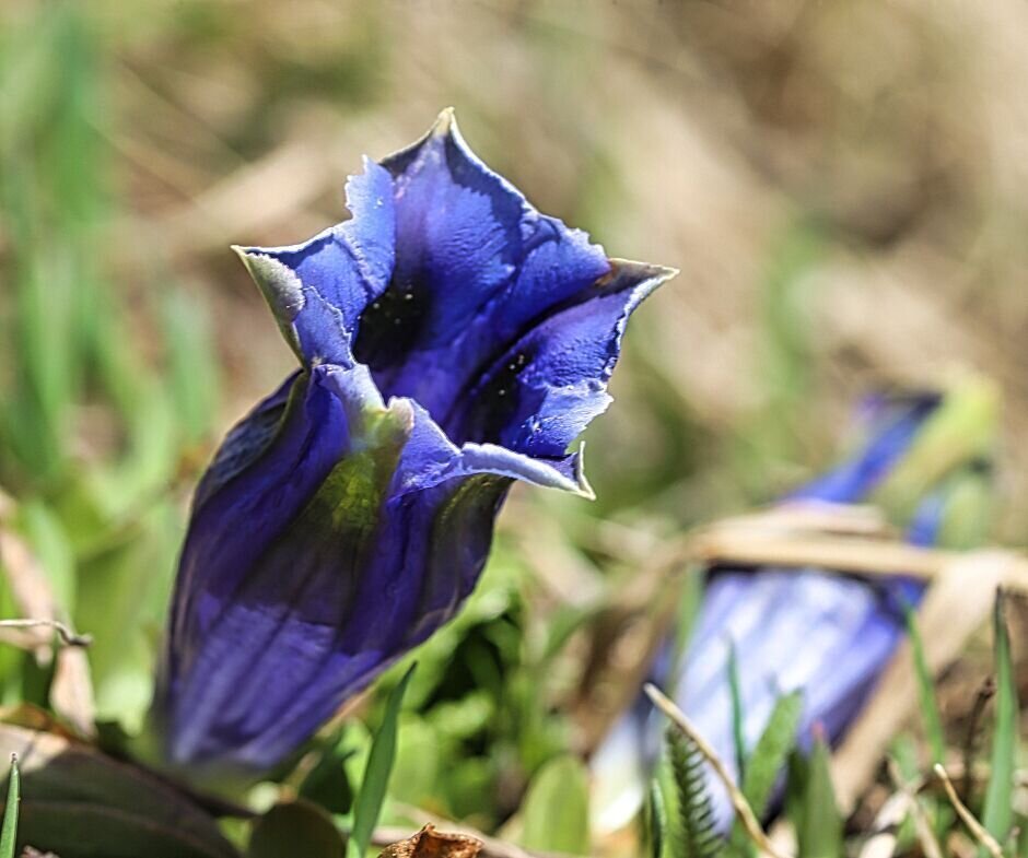 Vom Mai bis Juni blüht auf den freien Almflächen der Stengellose Enzian.
