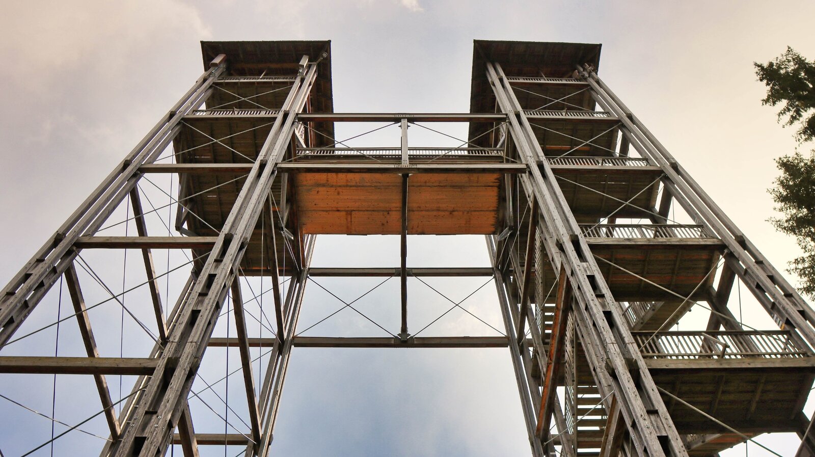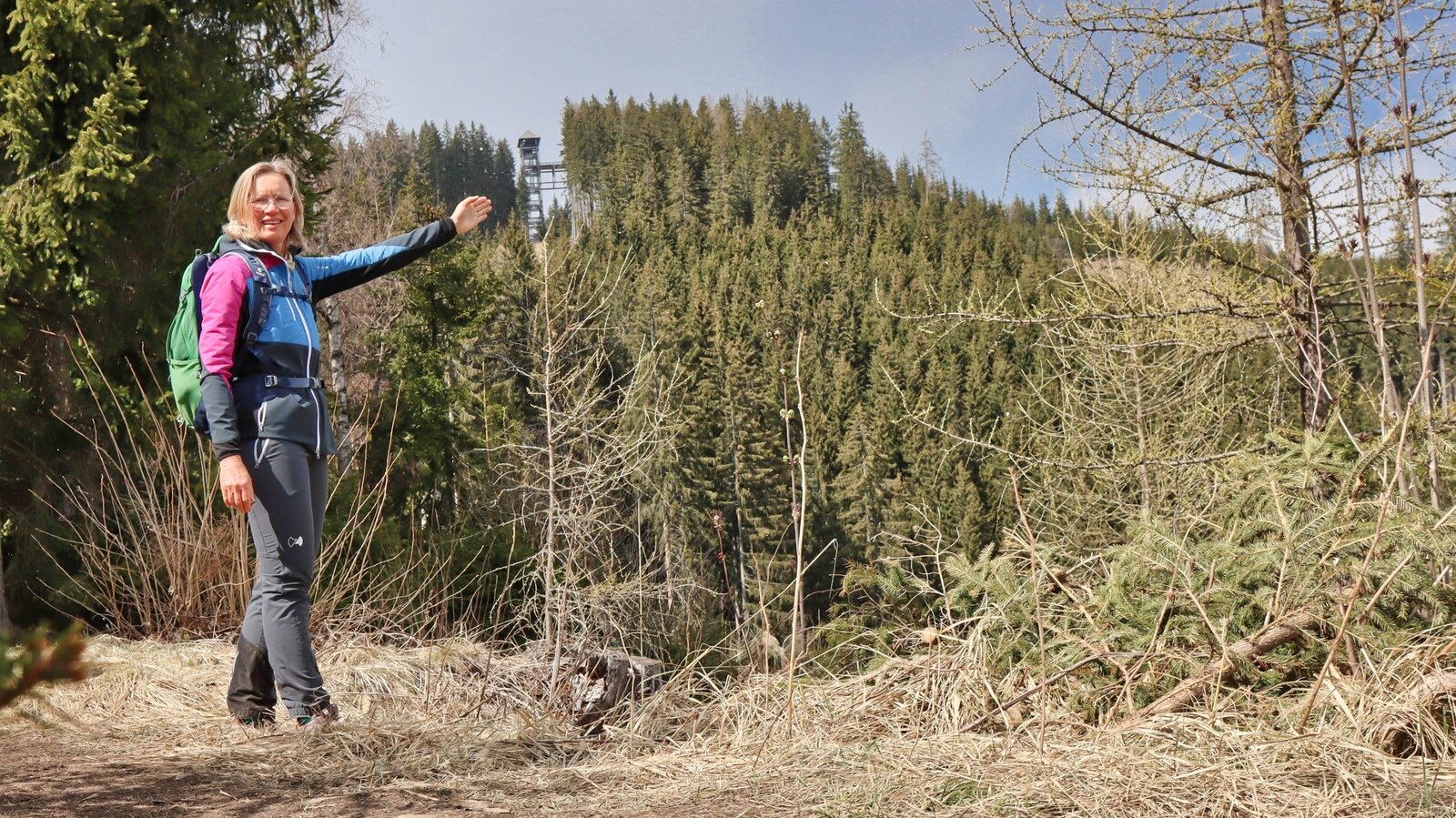 Das Ziel der Wanderung ist der 42 m hohe Aussichtsturm „Turm im Gebirge“ (Drehkreuz zum Aufstieg: 2 € Gebühr, Wintersperre von November bis März). Eine der beliebtesten Wanderungen in der Region überzeugt mit einem wunderbaren Ausblick auf das Judenburg-Knittelfelder Becken und die umliegende Bergwelt. An dieser Stelle stand bereits in den 50-er Jahren ein Funkturm. Im Jahr 1999 wurde der „neue“ Turm fertig gestellt und als Holzbauwerk dem Seckauer „Dom im Gebirge“ nachempfunden. Das Bauwerk ist insgesamt 42 m hoch, wobei sich die oberste Aussichtsplattform auf 36 m Höhe befindet und über 202 Stufen erreicht werden kann. Aber nicht nur der Aussichtsturm, sondern auch die Wolfsgrube und das, nur wenige Meter entfernte, Knittelfelder Kirchturmkreuz sind bei dieser Wanderung interessant anzuschauen. Die Wolfsgrube ist ein Relikt der vergangenen Jahrhunderte, wo Gruben zum Fangen von Wölfen genutzt wurden. Angelockt wurde der Wolf durch einen Fleischköder, der auf eine dünne Reisigschicht gelegt wurde, damit die Vertiefung bedeckt war. Die Fallgrube war meist mit Steinen ausgekleidet und drei bis vier Meter tief. In der Nähe der Wolfsgrube befindet sich das Kirchturmkreuz, dass von 1992 bis 1999 am provisorischen Pultdach der Stadtpfarrkirche Knittelfeld stand.