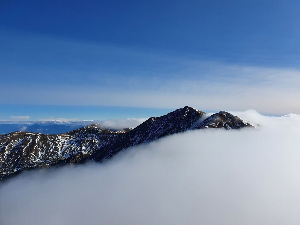 Nach etwas mehr als drei Stunden reiner Gehzeit konnten wir unseren Gipfelsieg am 2.356 Meter hohen Maierangerkogel feiern. Das komplette, südlich gelegene Murtal war noch verhüllt, im Norden war aber Kaiserwetter angesagt. Hochschwab, Gößeck, Zeiritzkampel, Admonter Reichenstein – man könnte die Liste Berge, die sich uns leicht angezuckert präsentierten, fast unendlich fortführen. Natürlich waren auch die prominenten Nachbarn Hochreichart und Zinken zu sehen, nur der etwas niedriger gelegene Brandstätterkogel kämpfte noch gegen eine Wolkenbank.
