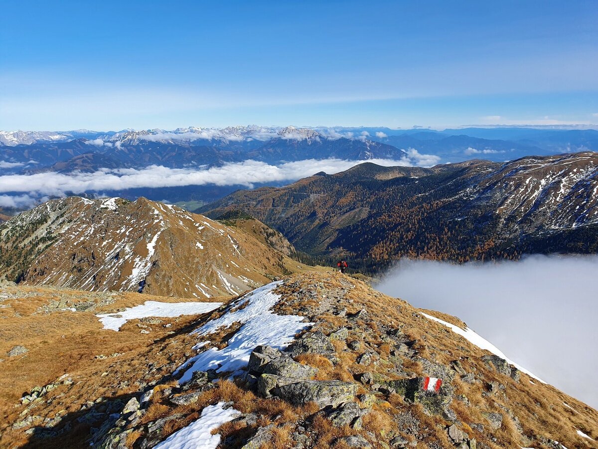 „Der große Unbekannte“ zwischen Indian Summer und 10-Meter Sicht! Entdeckt den wenig frequentierten Gipfel in den Seckauer Alpen: Maierangerkogel (2.356m) und im Anschluss auf den Brandstätterkogel (2.234m).