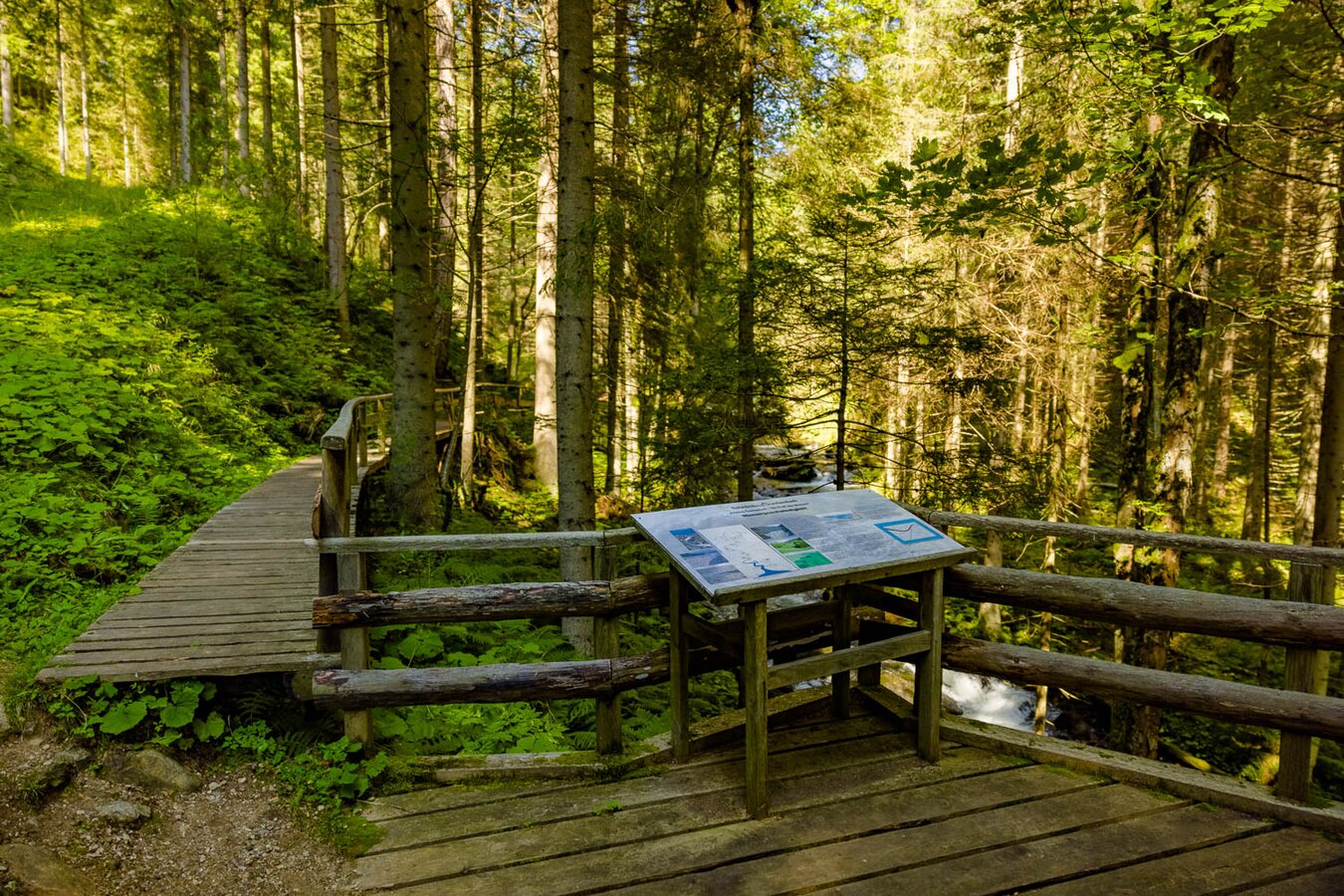 Das Naturdenkmal Grantizenbach wurde 1989 unter Schutz gestellt. Ihr startet bei dieser Wanderung mit dem spannenden Naturlehrpfad. Der Einstieg zum Themenweg befindet sich am Parkplatz gegenüber des Bauernhofs Kleinpöltzl unterhalb des Ortes St. Wolfgang. Ihr wandert über eine 500 Meter lange Forststraße bis zum Alpen-Steingarten und weiter zur Ahorn-Plattform. Weiter führt der Weg über einen Waldweg der über einige Holzstege und Holzbrücken entlang dem Granitzenbach führt. Mehrere Erlebnisstationen laden hier zum Entdecken und Mitmachen ein.