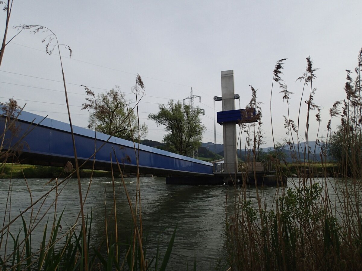 Hier geht es flach und ruhig dahin, bis sie bei der schwimmenden Murbrücke den Fluss überqueren.