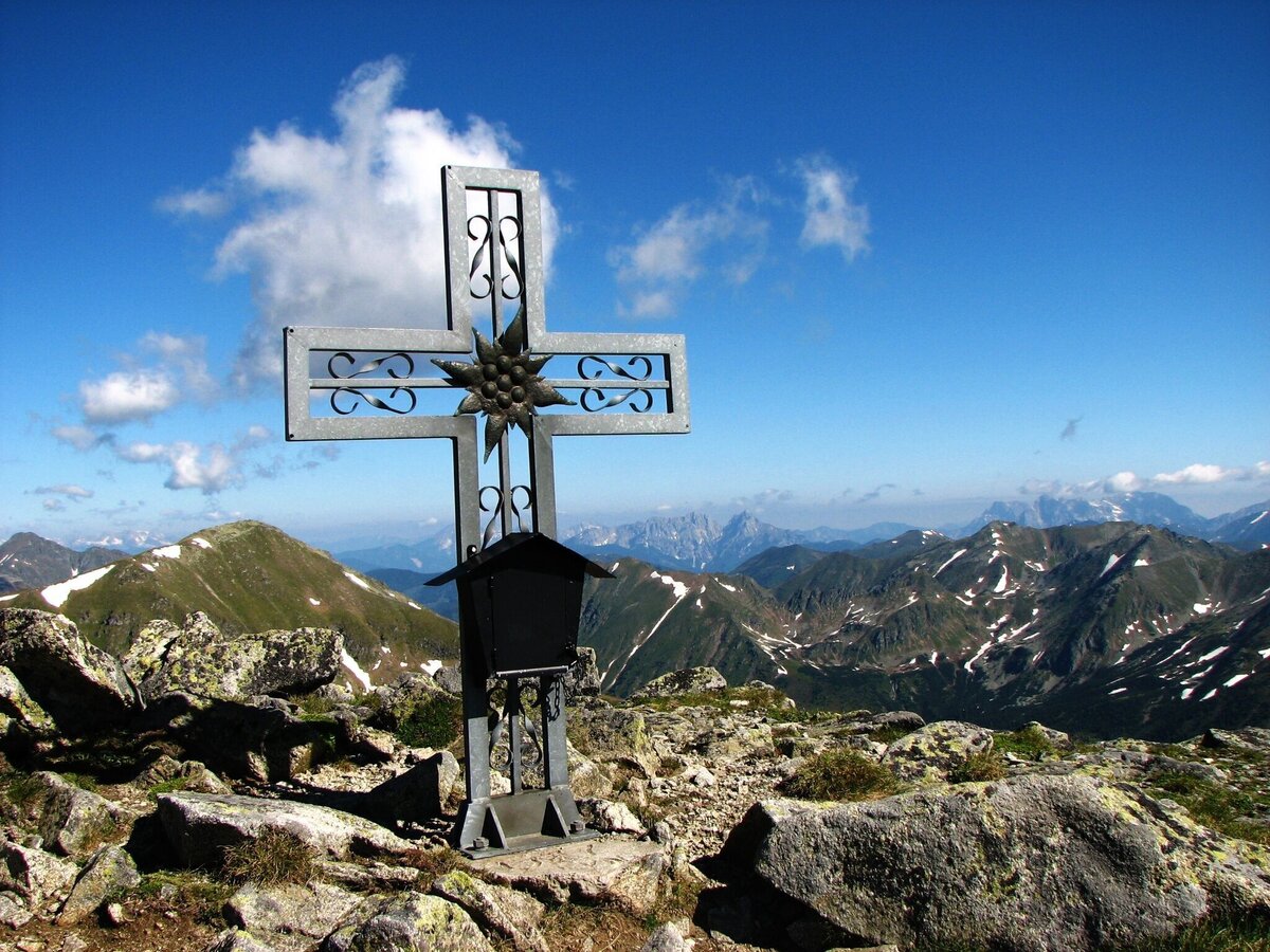 Nach dem Ringkogel geht es einige Höhenmeter bergab, bevor der Schlussanstieg auf den Pletzen beginnt. Nach knapp vier Stunden Gehzeit erreicht man das etwas vorgelagerte Gipfelkreuz, das nicht auf dem höchsten Punkt steht. Das Panorama ist traumhaft: Unten liegt der idyllische Sundlsee, links ragen mit dem Seckauer Zinken, dem Hochreichart und dem Geierhaupt die höchsten Vertreter der Seckauer Tauern in den Himmel. Ganz nah sind auch die Gipfel der Triebener Tauern, darunter der Westliche Gamskogel. In der Ferne sind auch einige Gesäuseberge zu erkennen.